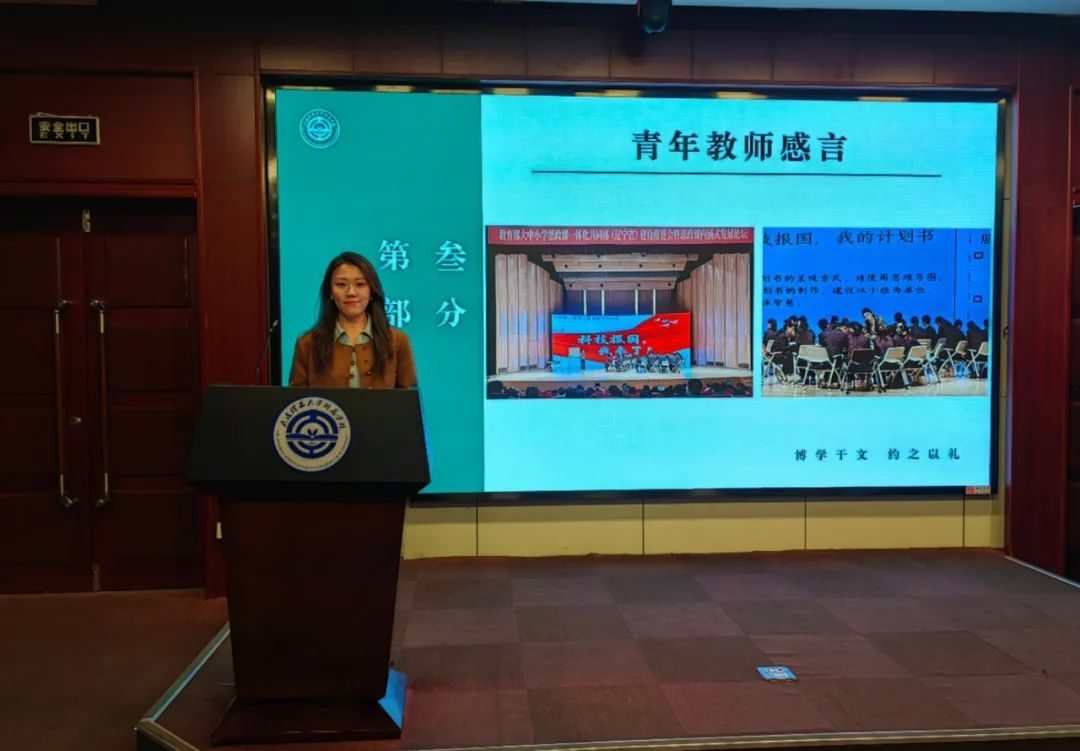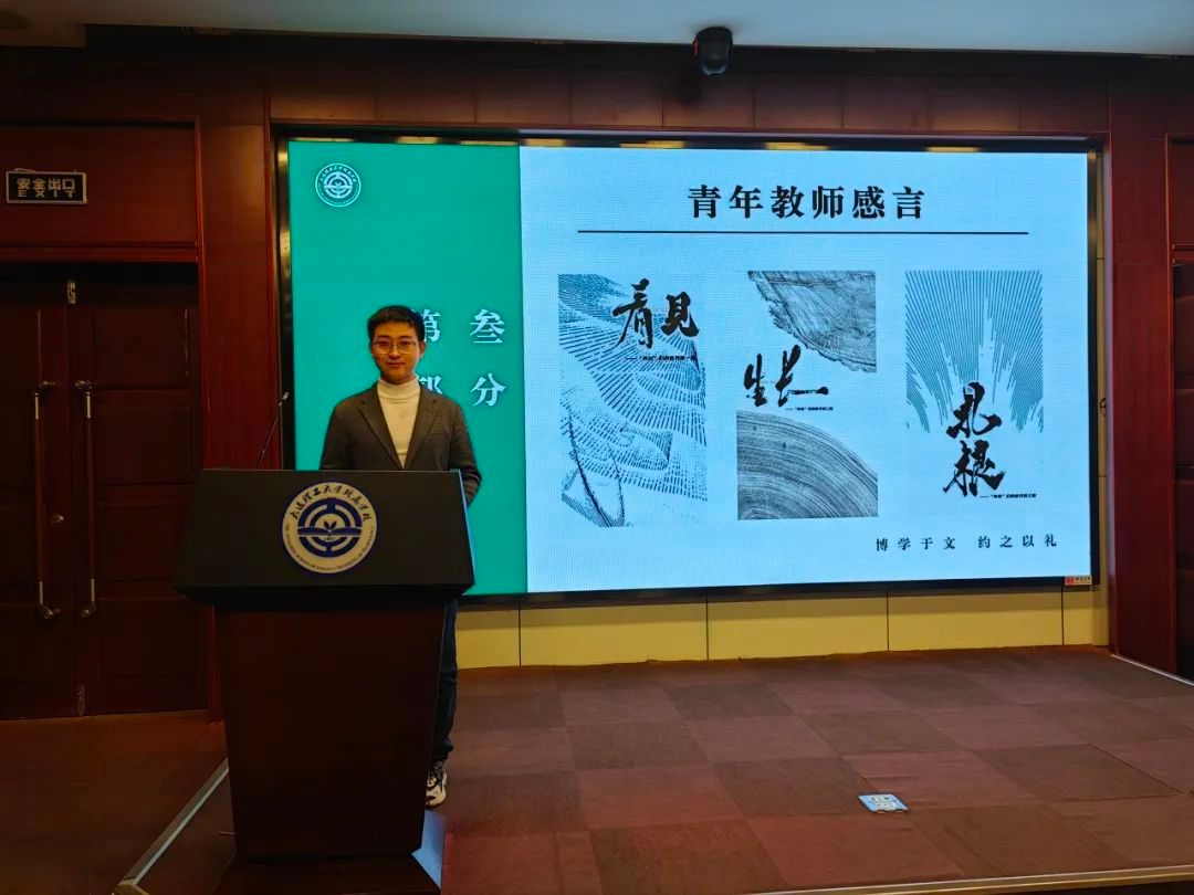 随后,优秀青年教师代表,祝权威老师和张楠老师先后上台分享成长经历。祝权威老师以教育叙事撰写为抓手,不断审视和改进教学方法,立足课堂,聚焦班级成长,实现自我超越。张楠老师抓住成长契机,以努力和韧性,迎难而上,出色完成教育部大中小学思政课一体化展示课活动,收获成长喜悦。