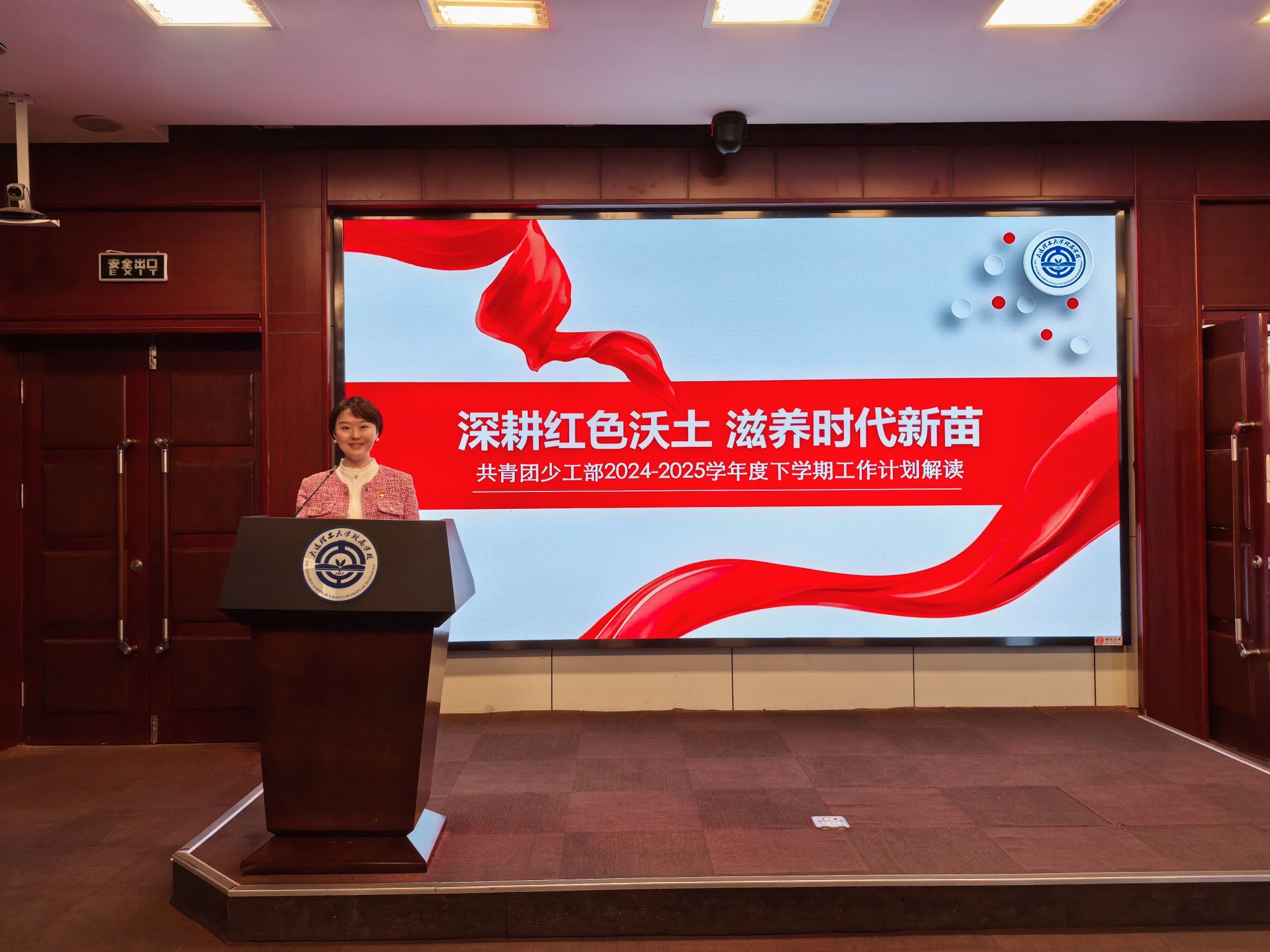 最后,朱家女主任代表共青团少工部发言。她从深化党团队一体化思政体系建设、打造“春醒行动”“四月天诗会”“砺剑三部曲”品牌活动、创新数字思政课程与三阶四维评价机制等方面,详细解读了部门新学期的工作计划。她强调,落实五育融合,培育新时代接班人,为祖国的繁荣富强贡献青春力量。