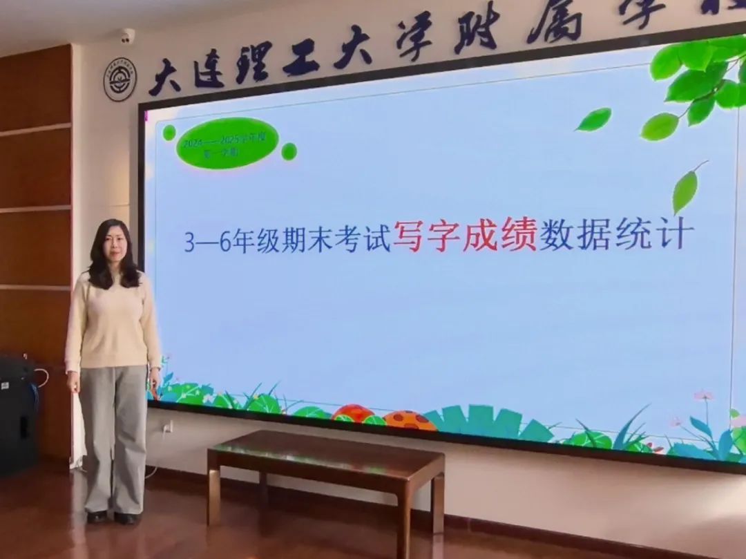 之后,由于冬霞主任进行写字学科教学质量分析。她指出,写字质量的提升源自各位教师的坚持不懈、齐抓共管。今后我们要继续以热爱为帆、以持之以恒为桨,共同帮助学生练就一笔好字。