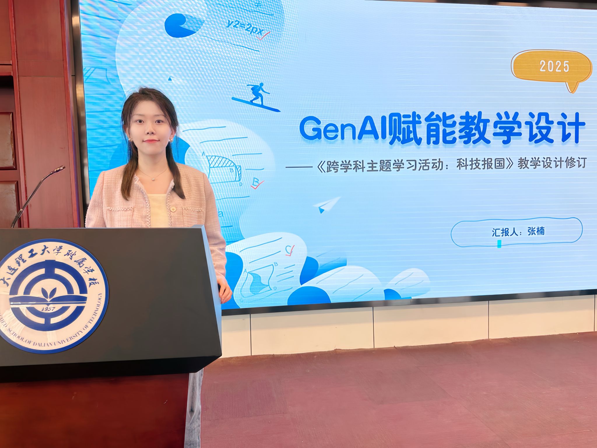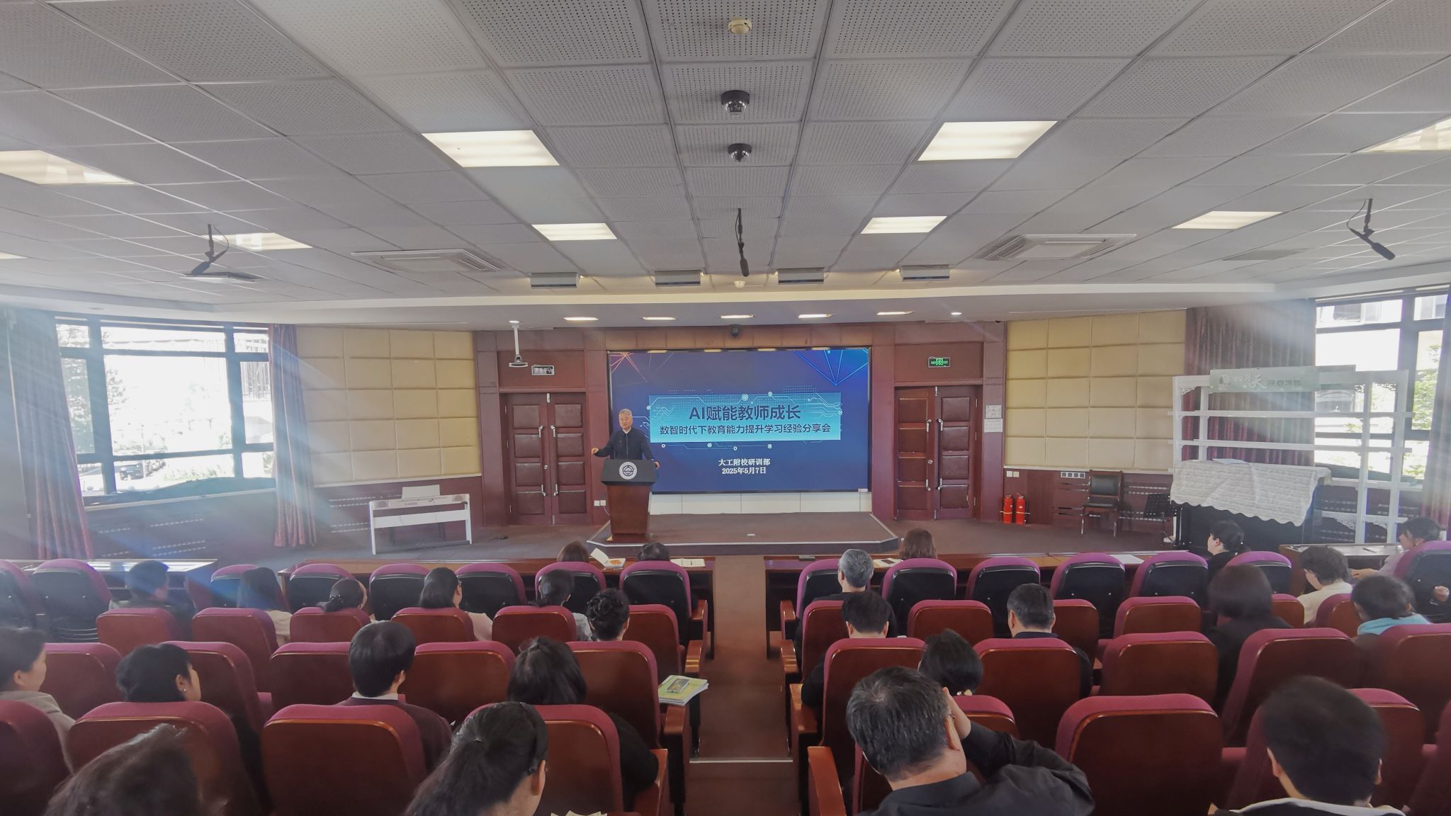 5月7日下午,我校举办了“数智时代下AI赋能教师成长”学习汇报分享会。研训部主任张洪伟主持会议,党委书记王东,党委副书记、校长李桂玲与全校教师共同参会。