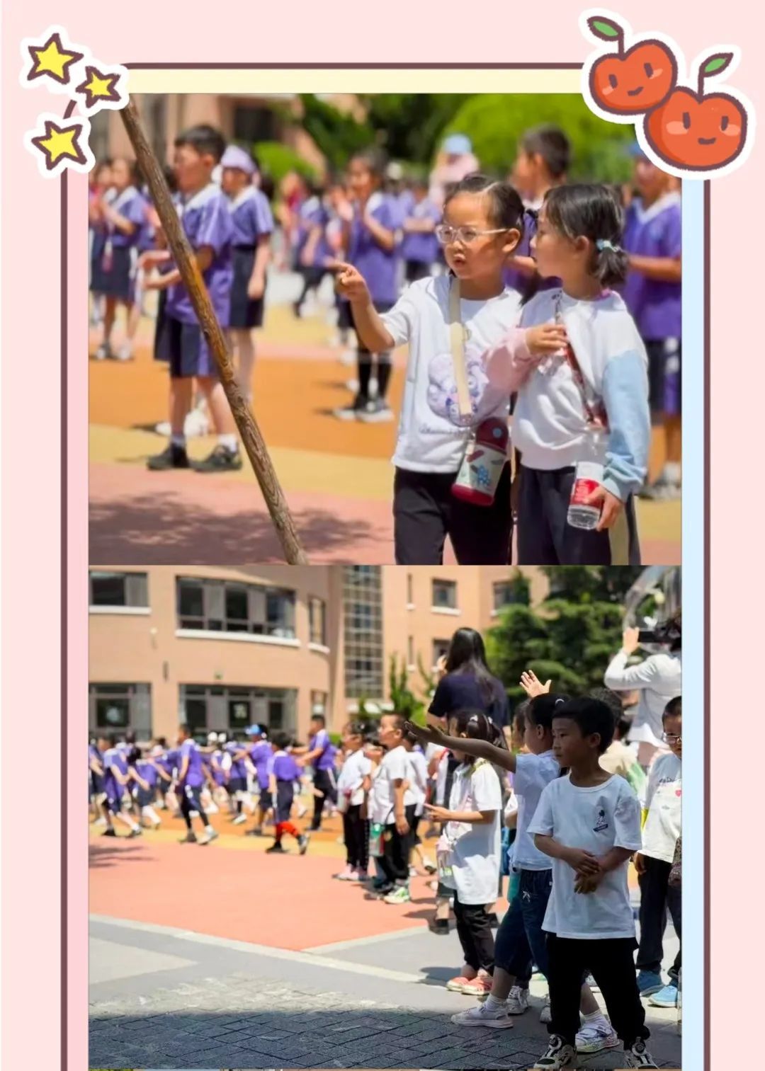 课间时分,孩子们在操场上观摩了整齐划一的广播操,有的还情不自禁地跟着音乐手舞足蹈,纯真的笑脸比阳光还要灿烂。