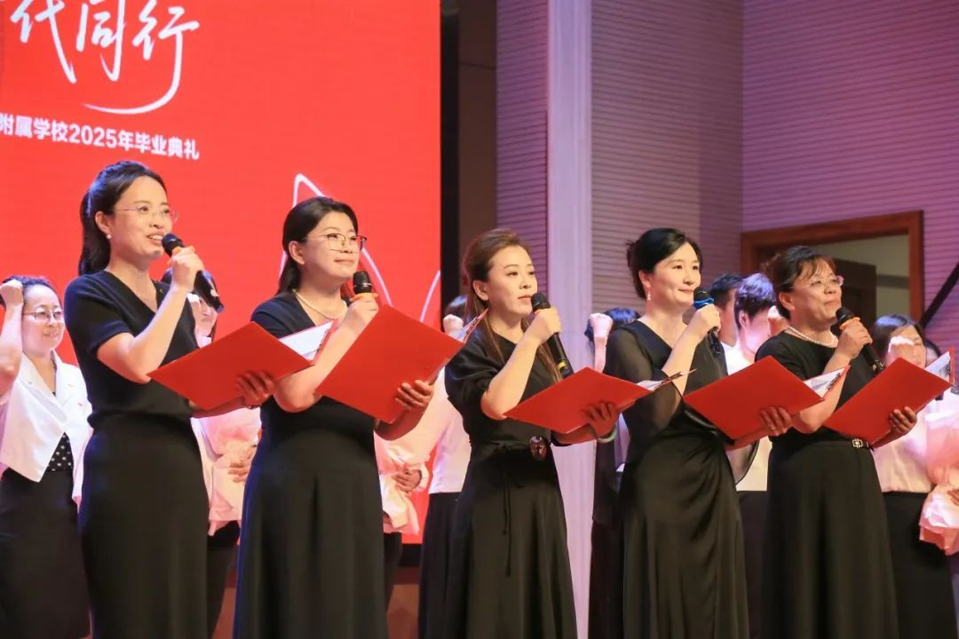 在《腾飞的大工附校》旋律中,舞台大幕定格大工附校校旗,师生共唱校歌,寓意工附精神薪火相传。这场科技与人文交融的典礼,不仅是告别,更是新一代青年以青春之名向时代的庄严承诺。
