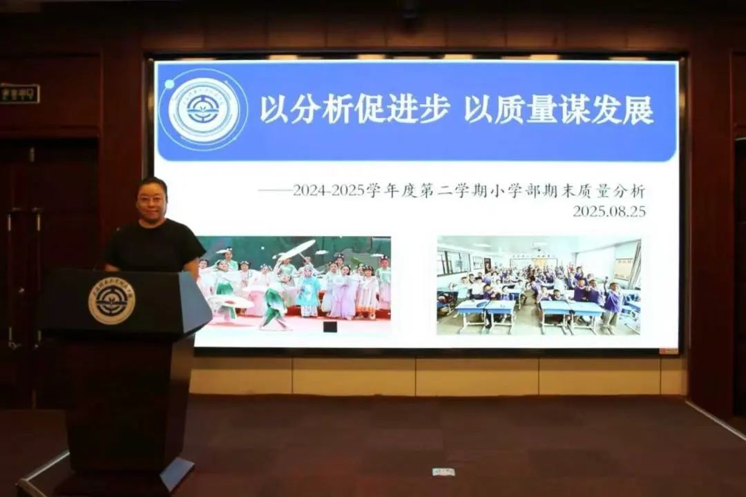最后,中学教学发展部主任姜竹、李娜,小学教学发展部主任杨晨分别对上学期教学质量与学业成绩进行了系统分析,为新学期教学质量提升提供了数据支撑和改进方向。
