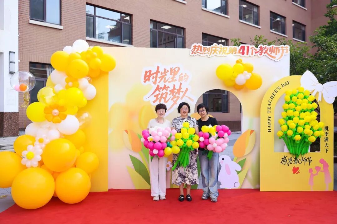 教师们踏上红毯,纷纷来到合影区,留下了一张张灿烂的笑容。镜头捕捉着亲切的互动和愉快的瞬间,也将这份温暖定格为永恒的记忆。