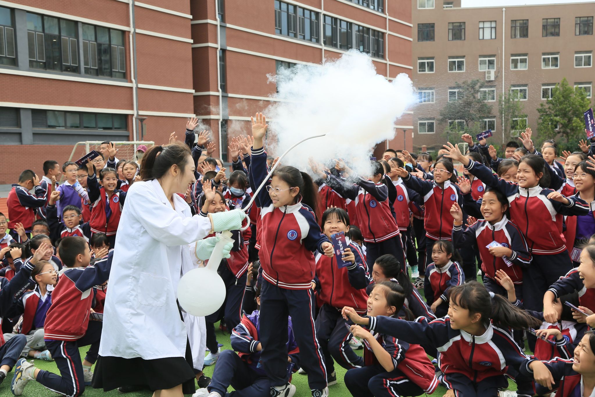 本次活动以纪念世界反法西斯战争胜利80周年为背景,主持人安妮老师带领大家回顾历史、展望未来,鼓励同学们继承先辈精神,以科技力量报效祖国。开幕式展演环节中,“智能交互”“化学魔法”和“极低温实验”三大项目轮番登场,精彩纷呈,赢得了现场阵阵掌声与欢呼。