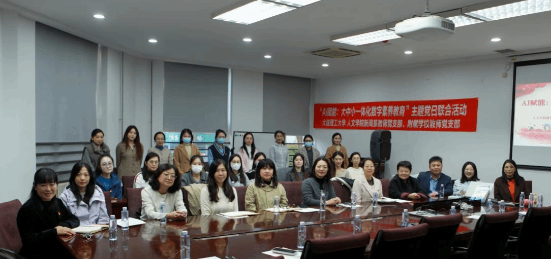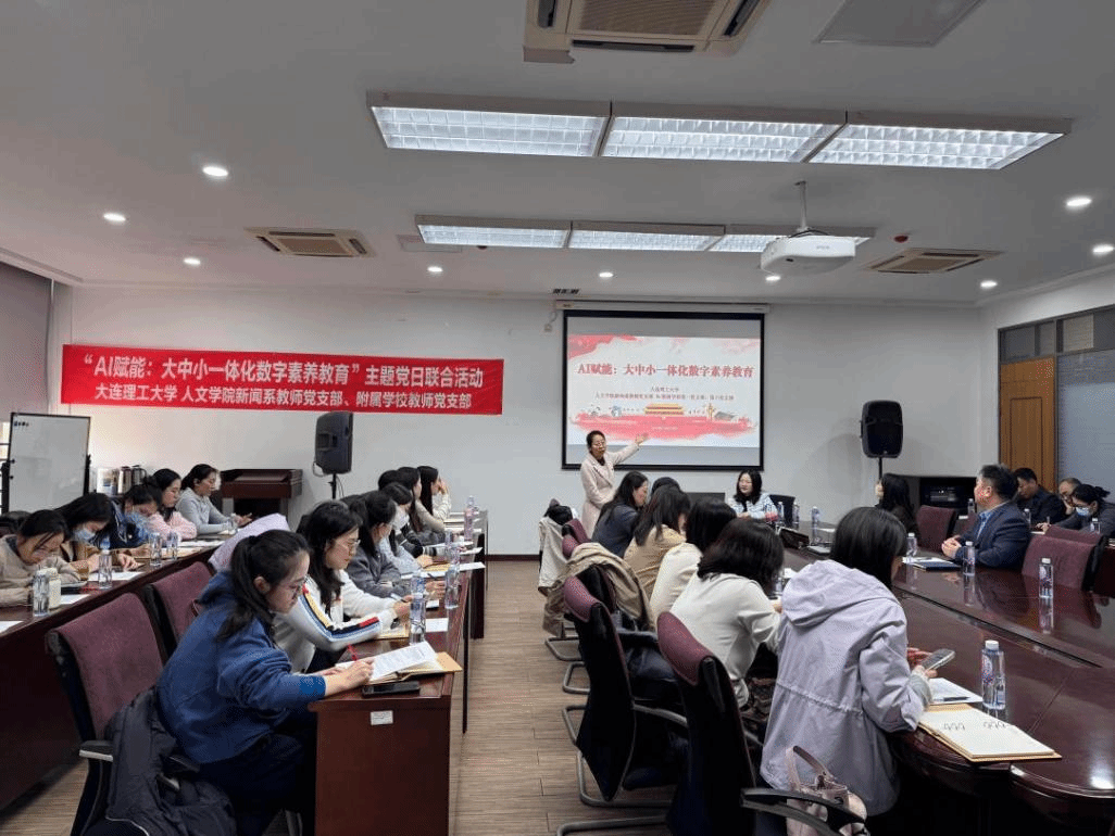 为响应新时代对教育发展的要求,促进高校与中小学在AI素养教育领域交流合作,10月22日下午,大连理工大学人文学院新闻系教师党支部与大工附校第一、六党支部在八角楼A206会议室开展“AI赋能:大中小一体化数字素养教育”主题党日联合活动。
