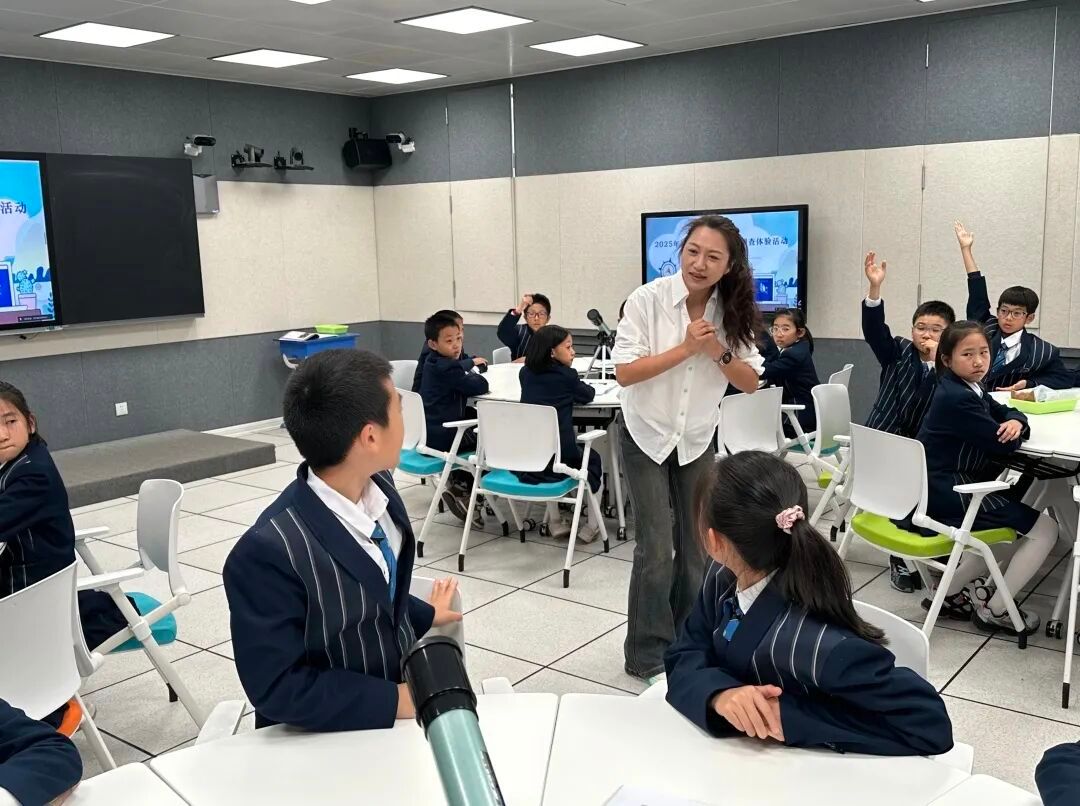 活动现场,科技辅导员徐硕老师以"星光闪耀"为主题,为学生带来了一场精彩的科普活动。她通过精彩讲授、互动体验和视频演示等多种形式,展示了天文学的前沿知识和研究方法。在徐老师的引导下,同学们积极思考、踊跃发言,现场气氛热烈非常。特别是在实践操作环节,同学们亲手参与科学实验,在体验中感受科技的魅力,展现出对科学探索的浓厚兴趣。