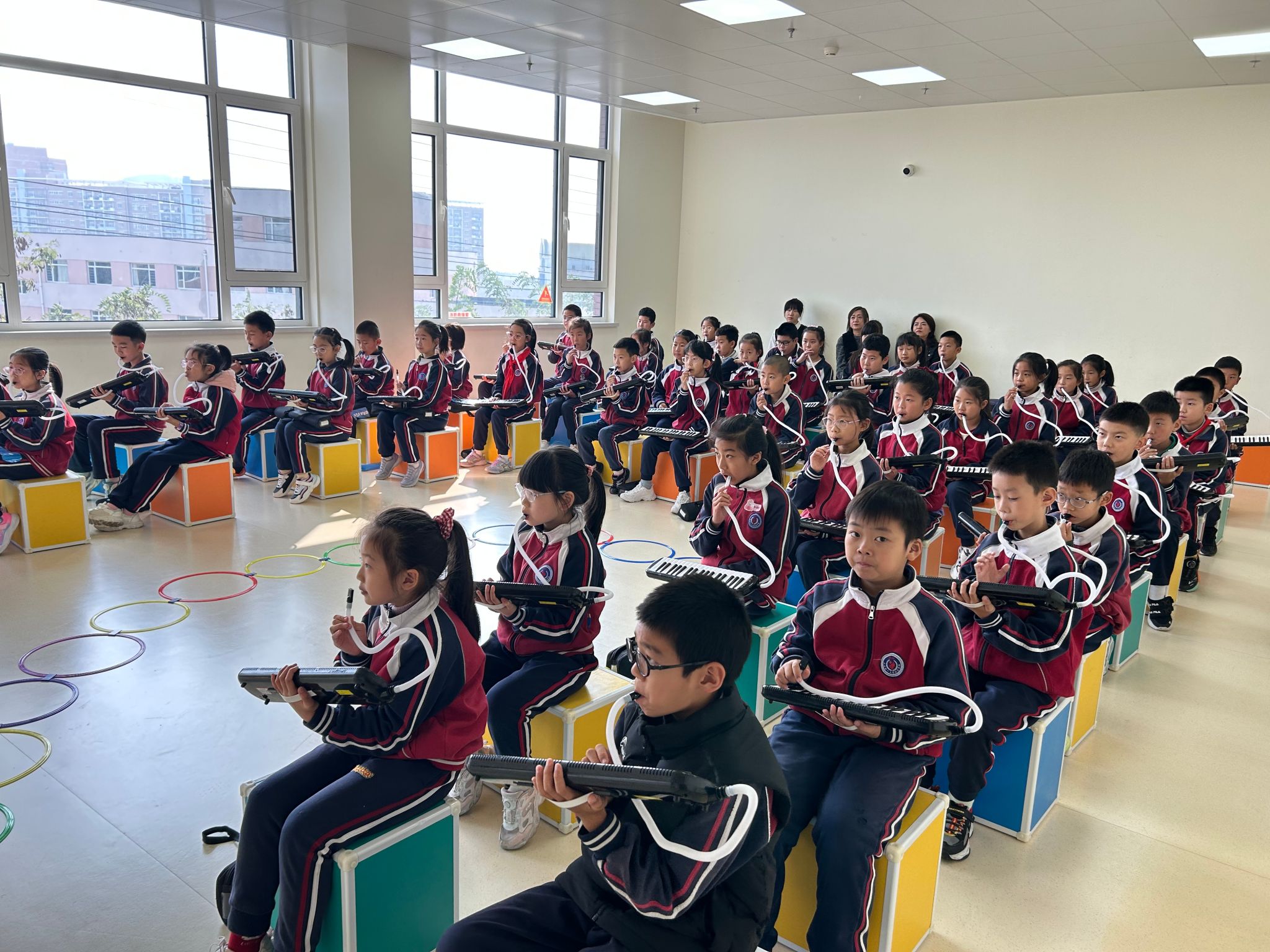 张晗老师执教了《洋娃娃和小熊跳舞》口风琴教学课。孩子们的指尖在琴键上跳跃,气息化作动听的旋律,口风琴与打击乐器的巧妙融合,将这首经典儿歌以全新的形式展现在课堂上,学生们在实践操作中掌握了音乐基础知识。课堂纪实