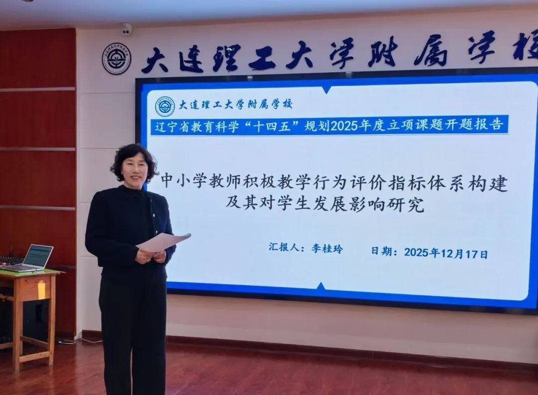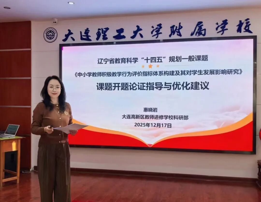 2025年12月17日,大连理工大学附属学校举行辽宁省教育科学“十四五”规划课题开题会,大连市教育科学研究所所长郑玉坤,大连市高新区教师进修学校科研部主任惠晓岩两位专家到场指导。
