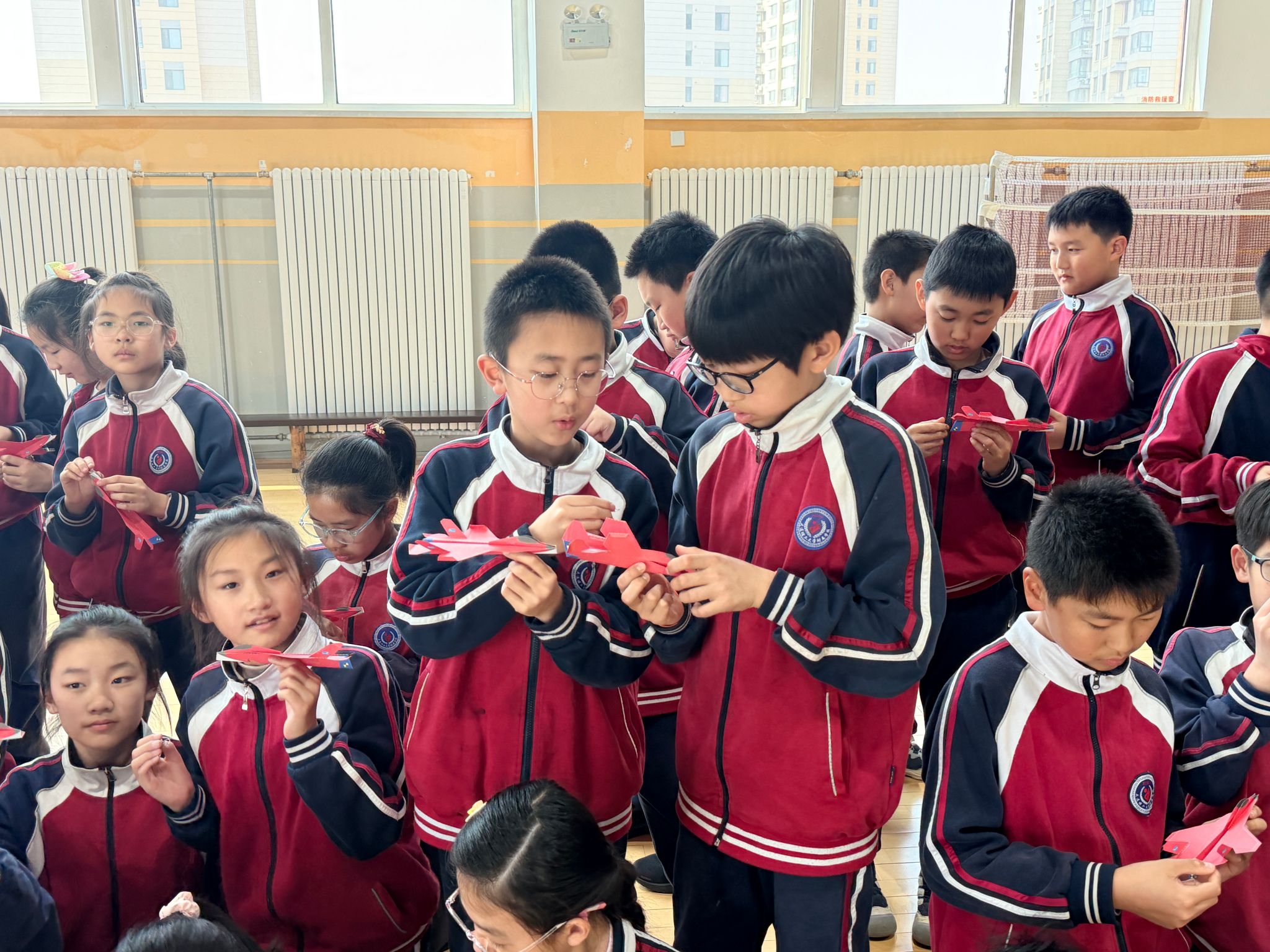 3 月 20 日中午,我校特邀辽宁省科技创新与人才培养研究会科学传播专家、“会飞的剪纸飞机” 创始人高佩德老师,为五年级全体学生开展了一场以折叠纸飞机为载体的互动教学活动。活动旨在普及航空航天科技知识,提升学生动手实践能力。