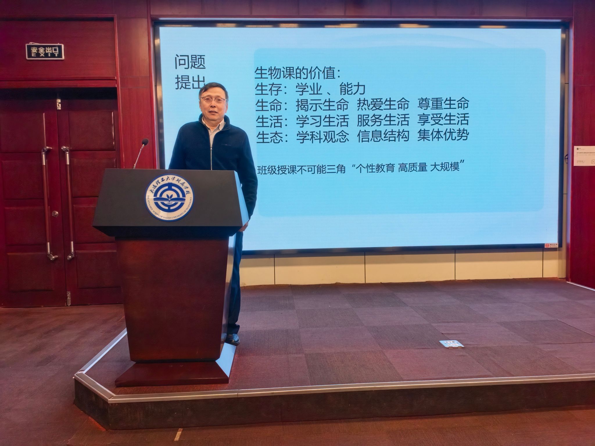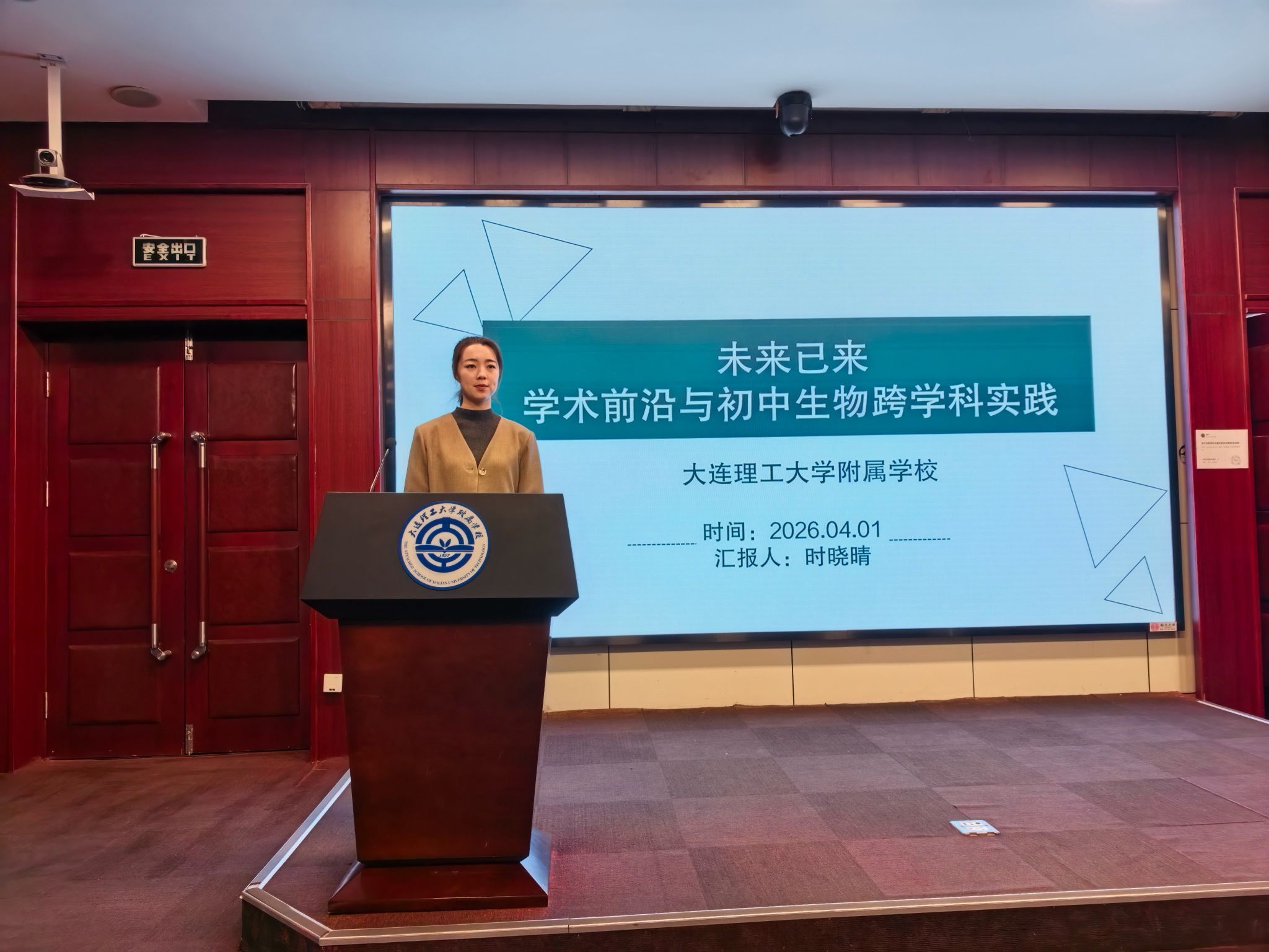 活动伊始,我校时晓晴老师分享《未来已来——学术前沿与初中生物跨学科实践》,紧扣初中生物教学实际,将初中生物跨学科实践与大连理工大学前沿成果深度结合,梳理出高校成果反哺初中课堂的实践路径,为跨学科教学开展提供新思路。