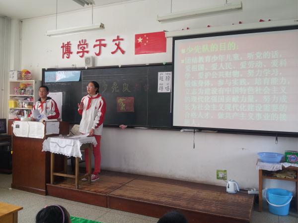 本次队课工作由大队部筛选选拔出来的高年级队干部担任。为了让队课生动、更吸引小朋友参加的兴趣,队干部们积极准备PPT,通过大队辅导员的3次培训有进行一次演练。在宣讲活动中,他们深情并茂地介绍了少先队的历史,队员的权利、义务和责任等知识,让一年级的小朋友知道了少先队的全称、作风和少先队员的标志,并进一步认识了国旗、队旗,同时在在队旗下一起体验了:戴一次红领巾、敬一次队礼、呼一次口号、唱一次队歌,宣一次誓,使一年级的小朋友们感受到加入少先队组织是很光荣的,同时增强了责任心和自豪感。
