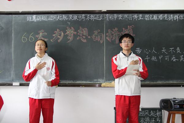 六十六天,可以改变人生;六十六天,可以影响未来;六十六天,可以让青春更精彩。初三学子用青春的名义宣誓,将用六十六天的奋斗,让飞翔的梦在六月张开翅膀,用六十六天的奋斗,让成功的歌在六月引吭高唱。他们不做退缩的懦夫,将用自信披荆斩棘,用鲜花铺就辉煌。