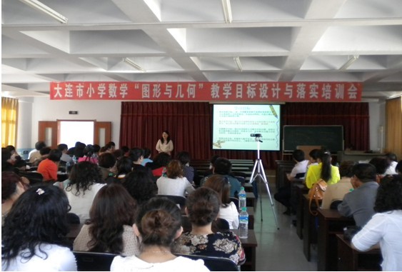 为进一步贯彻落实数学课程标准,提高小学数学教师新课程的落实能力,5月16日,大连教育学院小学教师教育中心在瓦房店市友谊小学召开了大连市小学数学“图形与几何”教学目标设计与实施培训会。会上来自不同学校的三位教师分别做课。我校陈文涛老师,结合案例课对“图形与几何”教学目标的设计与实施进行了案例分析。通过案例现场展示及分析活动,使参加培训的教师进一步明确如何设计与实施“图形与几何”教学目标。