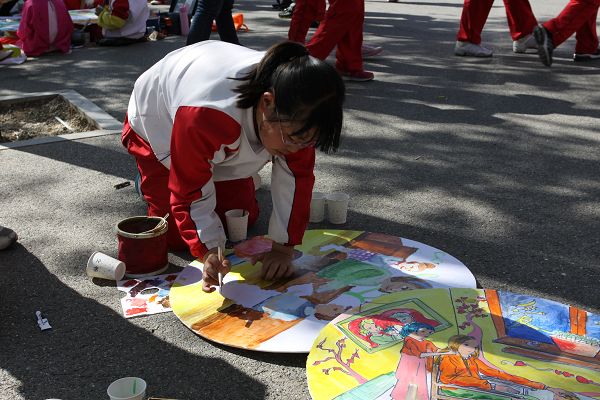 此次马路画大赛是我校“美德文化节”系列活动中的一项。通过此次绘画比赛,提高了同学们对书法绘画的热情,一方面提高了她们的绘画技法,实现了自我教育。另一方面也渗透了对学生的思想品质教育,美育融入思想中,有利于培养学生的文明素质。