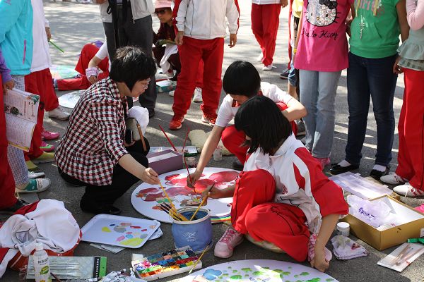 近3个小时精心的创作,在队员们的巧手下,一幅幅形态各异的作品铺满了整个操场。一件件作品构思新颖,色彩鲜明,线条流畅,稚嫩中不乏创意,引得围观的老师和同学啧啧称叹。