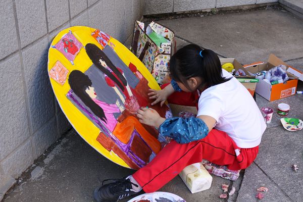 5月29日下午,温暖的阳光,清凉的树荫下,小学部三—六年级“我与美德有约”KT板马路画大赛,在理工附校校园里火热地进行着。