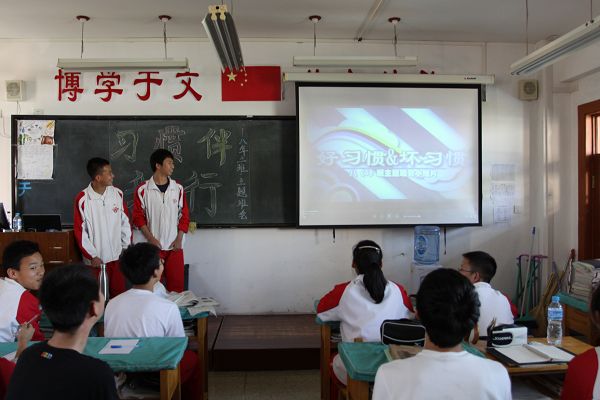 同学们在7分钟的欢声笑语中感受到习惯的重要性。之后“清华学霸”的新闻视频以及她们对附校学子的真诚寄语,更深一步地使大家认识到“习惯决定成败”。应保持的好习惯,需改正、克服的坏习惯,让大家树立起“好习惯伴我行”的目标,一起携手奋斗。