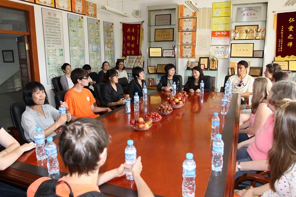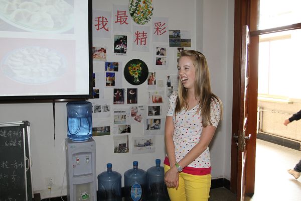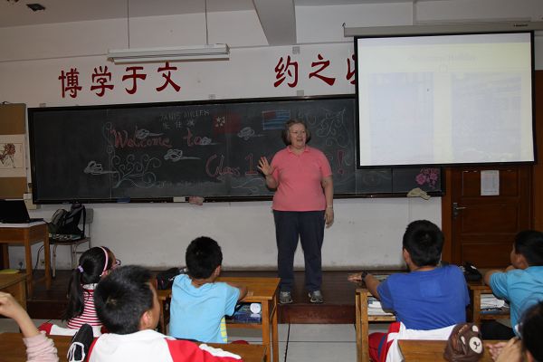 周杰校长、小学部赵欣欣、赵霞两位副校长和英语教师热情接待了外国友人。座谈期间,赵欣欣副校长介绍了我校的概况,英语老师也纷纷与留学生们进行交流。接着11位留学生走进四、五、六年级教室。留学生向学生们介绍了万圣节、圣诞节等西方的传统节日,这些西方节日浪漫的氛围及热闹的活动得到了学生的青睐,孩子们表现出极高的学习热情,争抢发言,直接用英文与留学生进行对话。并通过多媒体、个人表演等多种形式介绍了我国的传统节日,增进了相互间的交流。
