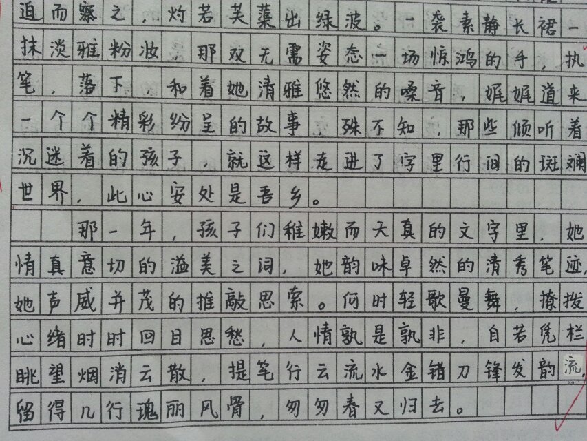 八年级语文教师在教师节来临之前组织了《我的老师》征文活动,学生在作品中又一次回味、体验了老师们的细心、爱心、耐心。字里行间表达了自己对老师的感恩之心,用心谱写了同一个心音:老师,谢谢您。老师们也在辛苦的批改之余收获一份感动和幸福,在学生的感恩声中将度过一个温馨的教师节。