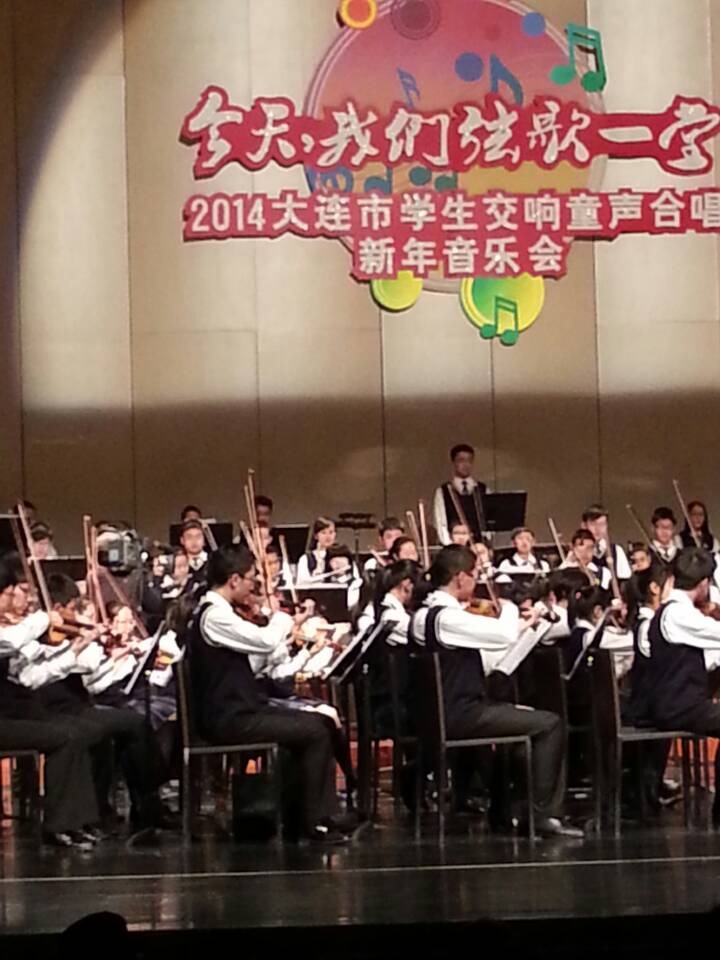 2013年12月27日晚,大连市学生交响乐团与大连市童声合唱团于大连国际会议中心举行“今天,我们弦歌一堂”新年音乐会。我校王筱湉、代云飞两名学生参与了本次交响乐团的演出。