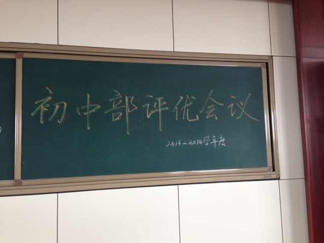 2014年3月26日中午,初中部全体教师和参评学生,在校二楼会议室召开初中部评优会议。同学们逐一登台通过演讲等多种形式总结自己成长中的闪光点,他们自信、乐观、阳光,多次赢得老师们的笑声和掌声。最终评选出多名优秀的学生代表。