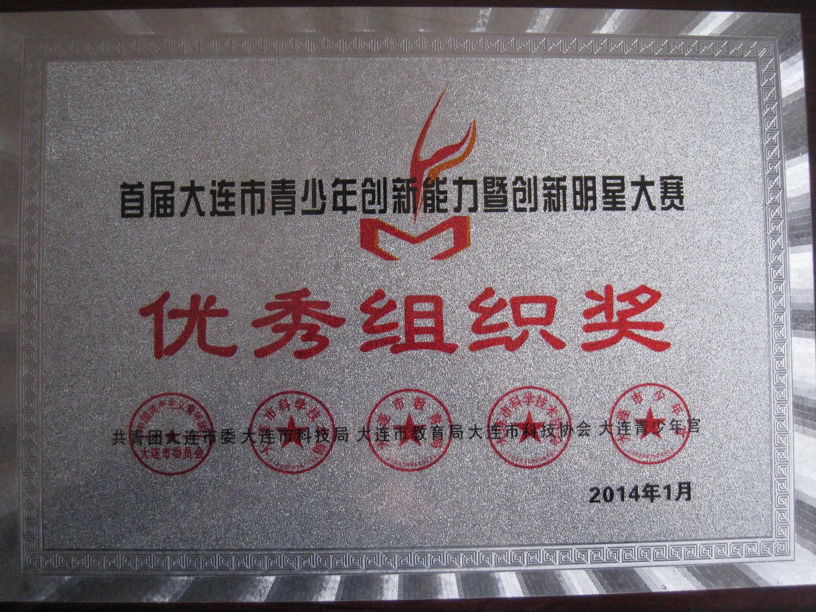 2014年首届大连市青少年创新能力暨创新明星大赛于2014年3月28日在西岗区五四路小学举行了颁奖仪式,这次活动由大连市青少年宫、大连青少年发明创新俱乐部联办,此次比赛吸引了全市50多所学校280多名优秀学生参与。我校科技教师邱明指导学生积极备战,参加比赛,理工附校获得“优秀组织奖”。
