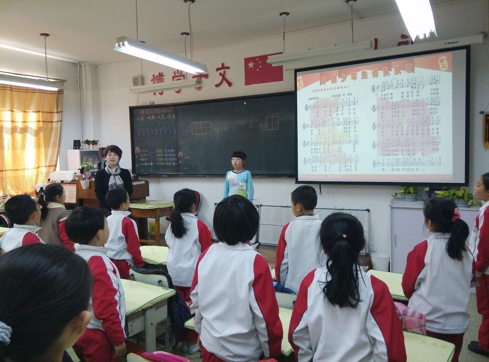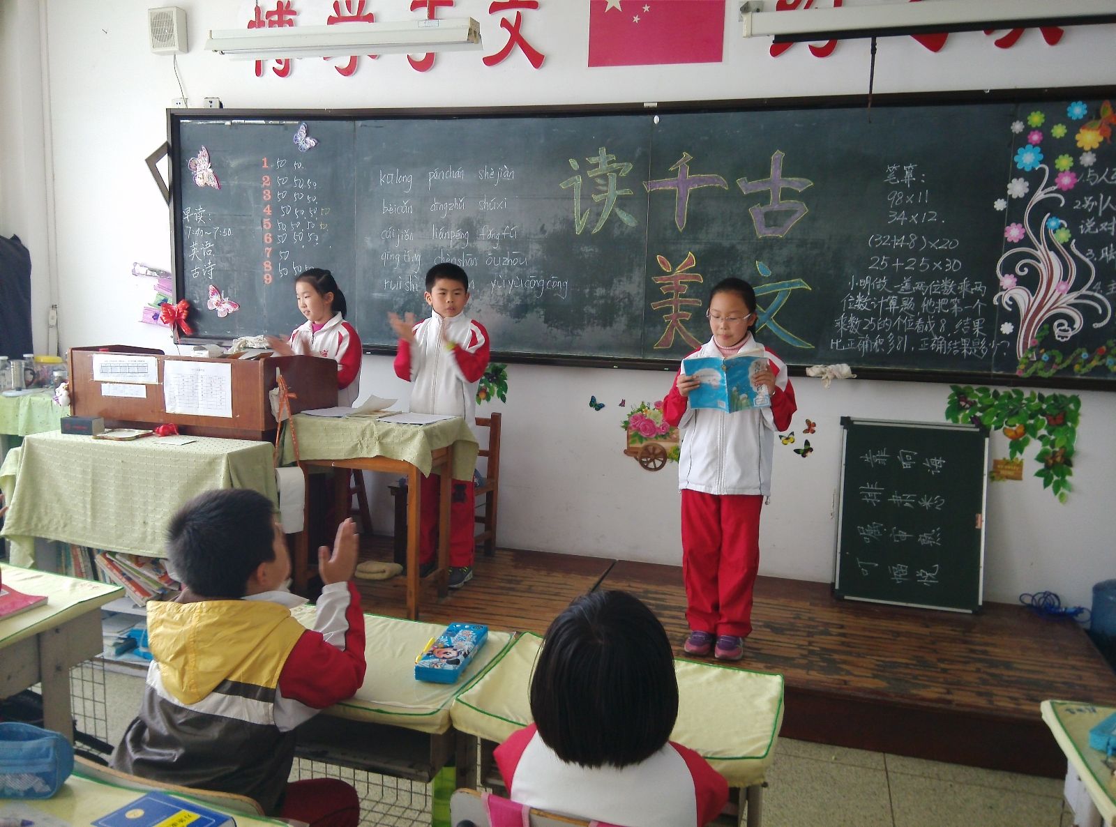 经典诵读已经成为我校的特色,学生们在小学阶段已经储备了多首诗词经典。为了再进一步掀起学习经典的高潮,我校少先队召开了《读千古美文,做少年君子》主题中队会,学生们在一阵阵嘹亮的队歌声中展开了本次中队会的序幕,通过吟诵、吟唱、表演、书法以及绘画等形式,营造“个个颂扬传统美德”的良好氛围。在活动中,有的班级进行诗词诵读比赛;有的班级通过说出一种事物,学生理解之后用一句诗词表达;有的班级讲经典故事、演经典剧;还有的班级更具体的围绕“孝亲”这一主题,畅谈自己如何孝亲敬老,践行孝道。