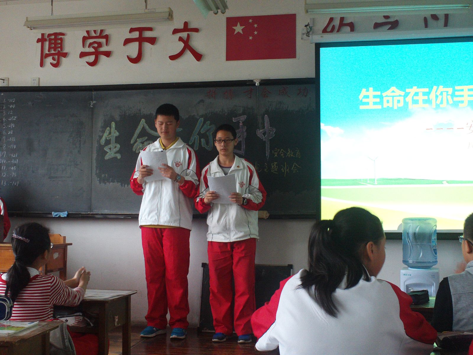 为进一步加强平安校园建设,增强全体同学的安全意识,营造一个更安全、更文明、更和谐的校园环境, 4月17日下午,八年五班全体师生在本班教室开展了了有关“生命在你手中”的安全教育班会活动。