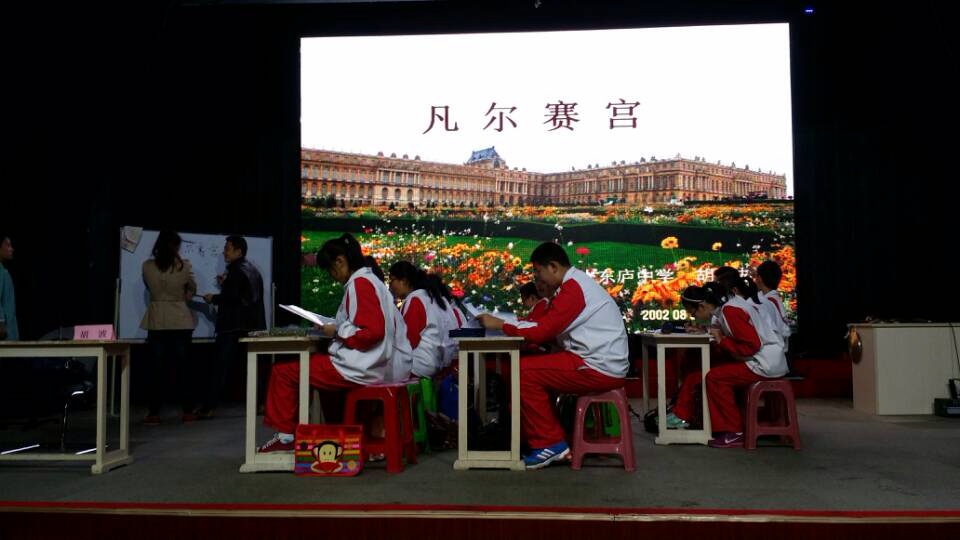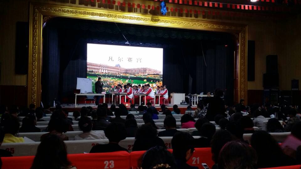 2014年4月19、20日两天,全国课改课型展示活动在我市举行。会上,由全国知名的课改成功学校杜郎口学校校长做精彩报告,并有来自课改名校的名师现场做课,并由我校8年5班、8年6班各20名学生配合教师上展示课。