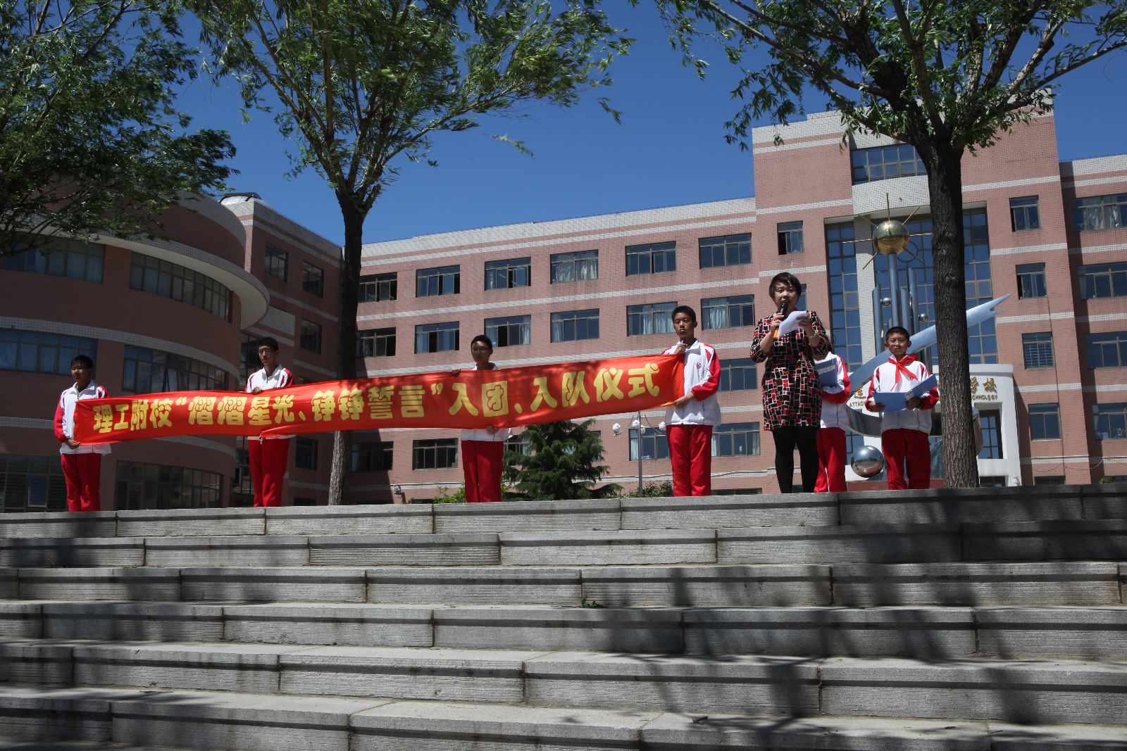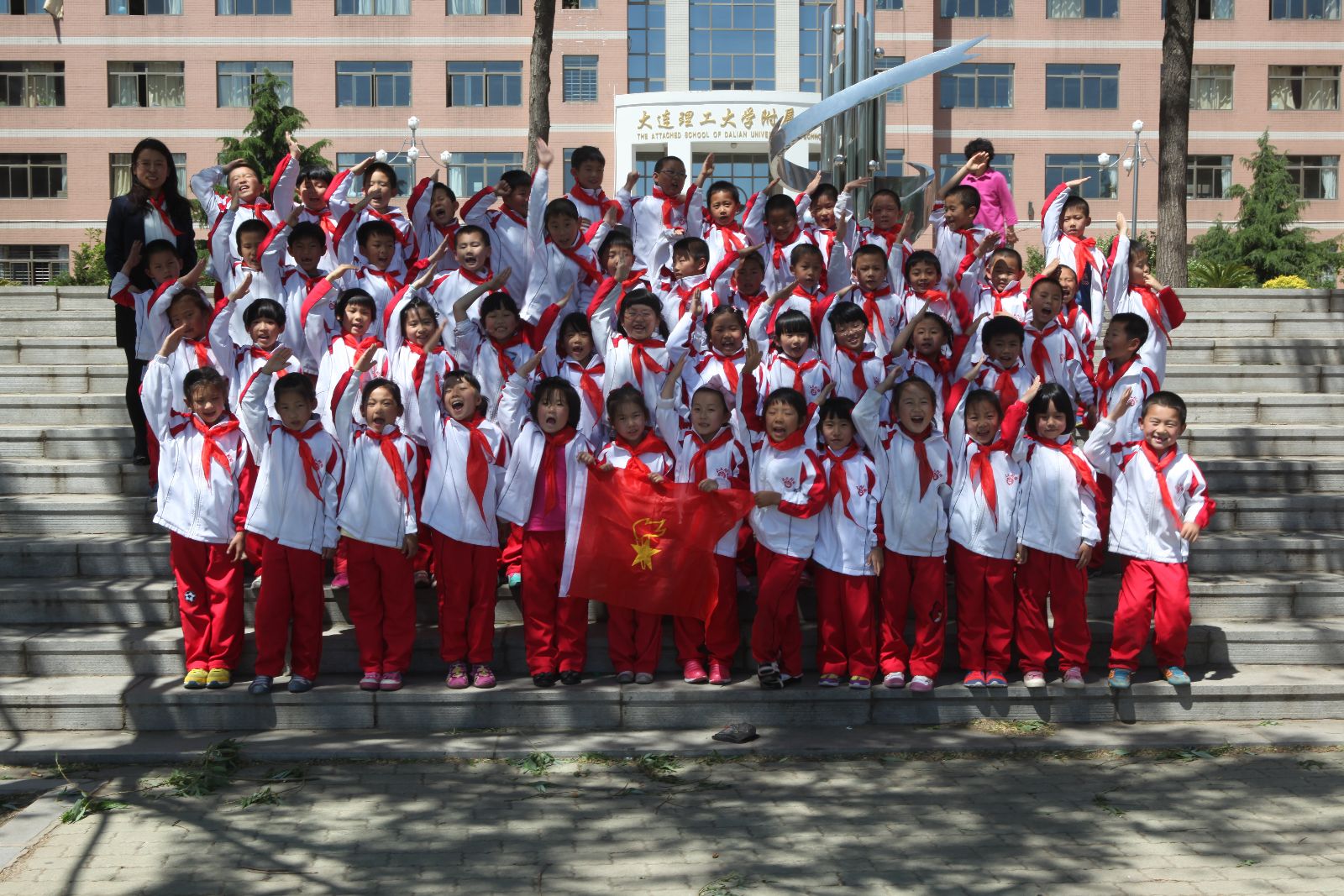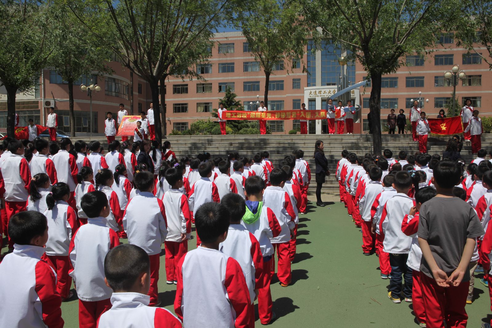 2014年5月26日12时50分,在初夏的微风中,大连理工大学附属学校的学生们迎来了14年的入团、入队仪式。闫书记、赵校长以及团委、大队领导列席参加本次仪式。