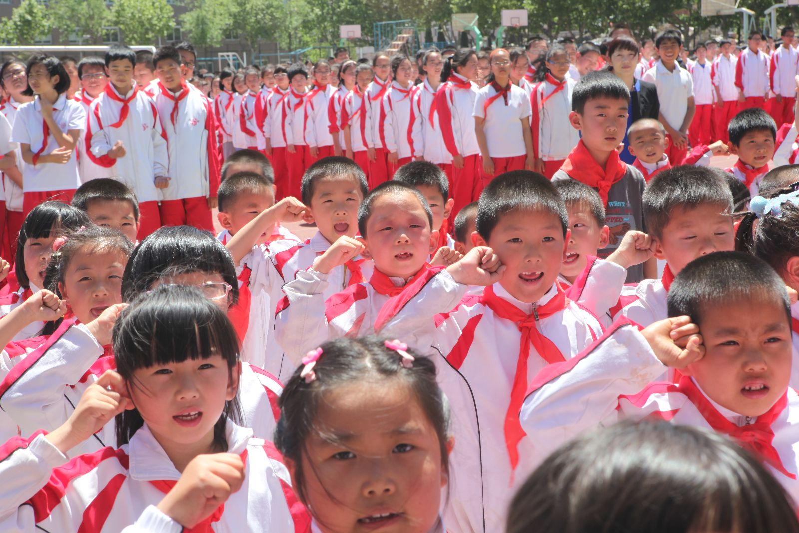 共青团、少先队,作为中国共产党组织的一部分,一直在中、小学中发挥这积极的作用,每一位小学生都以加入少年先锋队为自豪,每一位中学生都以能够成为共青团的一份子而骄傲。本次仪式中,52位中学生以及300余名小学生光荣地加入了共青团、少先队。团徽闪耀,是我们的信仰,红领巾飘飘,是我们的呼号,爱祖国,爱人民,热爱中国共产党,附校的校园因为有了你们而更加熠熠生辉,光彩夺目!