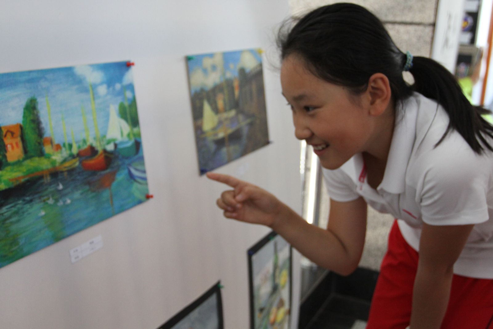 6月12日,邀请全校教师、学生参观各班的美术作品展,聆听作品介绍。