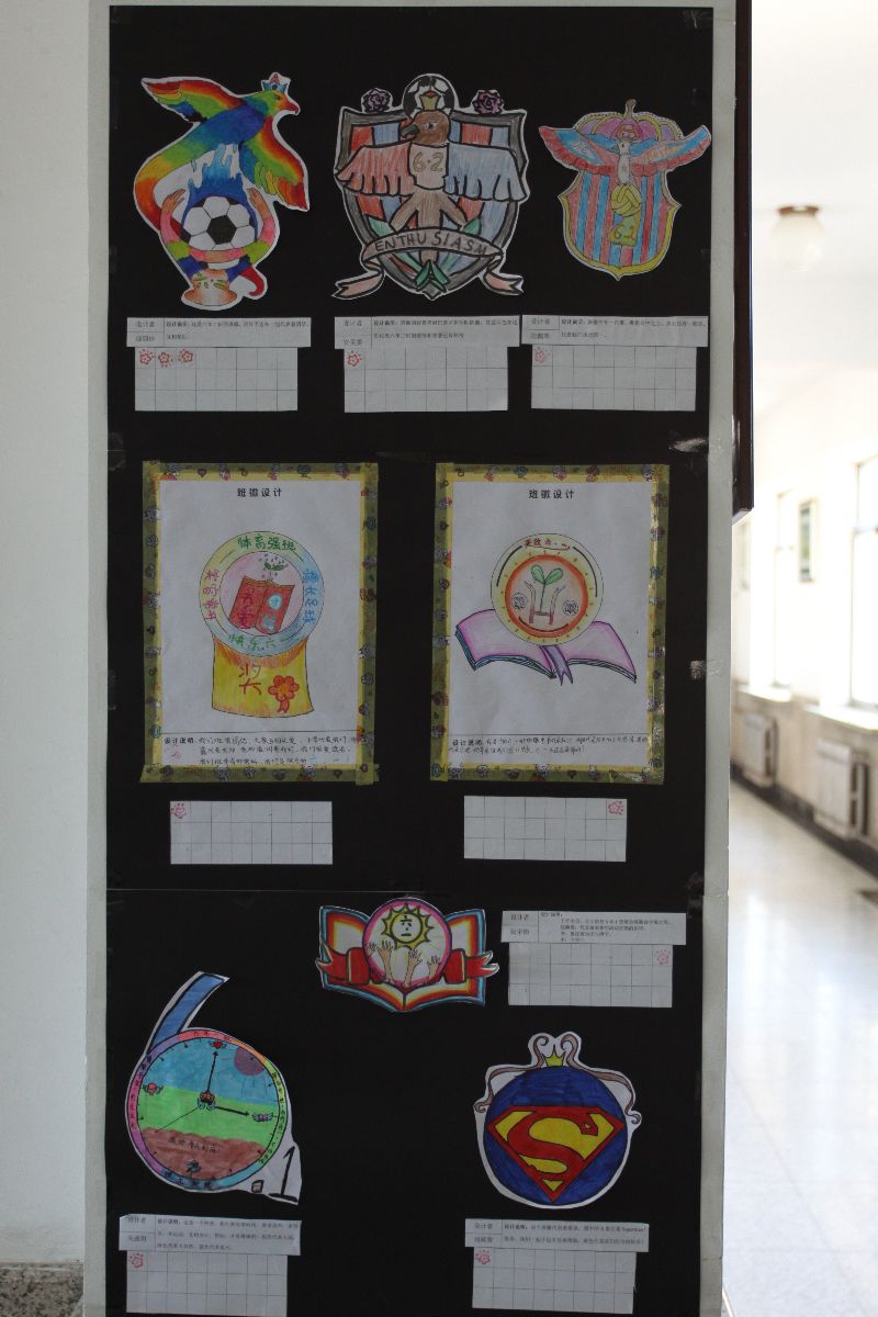 1.美术教师平常在上课过程中就注意了学生作品的指导与收集。并于3月15日向全校学生布置了此项工作。4月初—5月末,根据课程内容收集、整理作品,各班学生共同合作,创作班徽、绘画、书法作品。