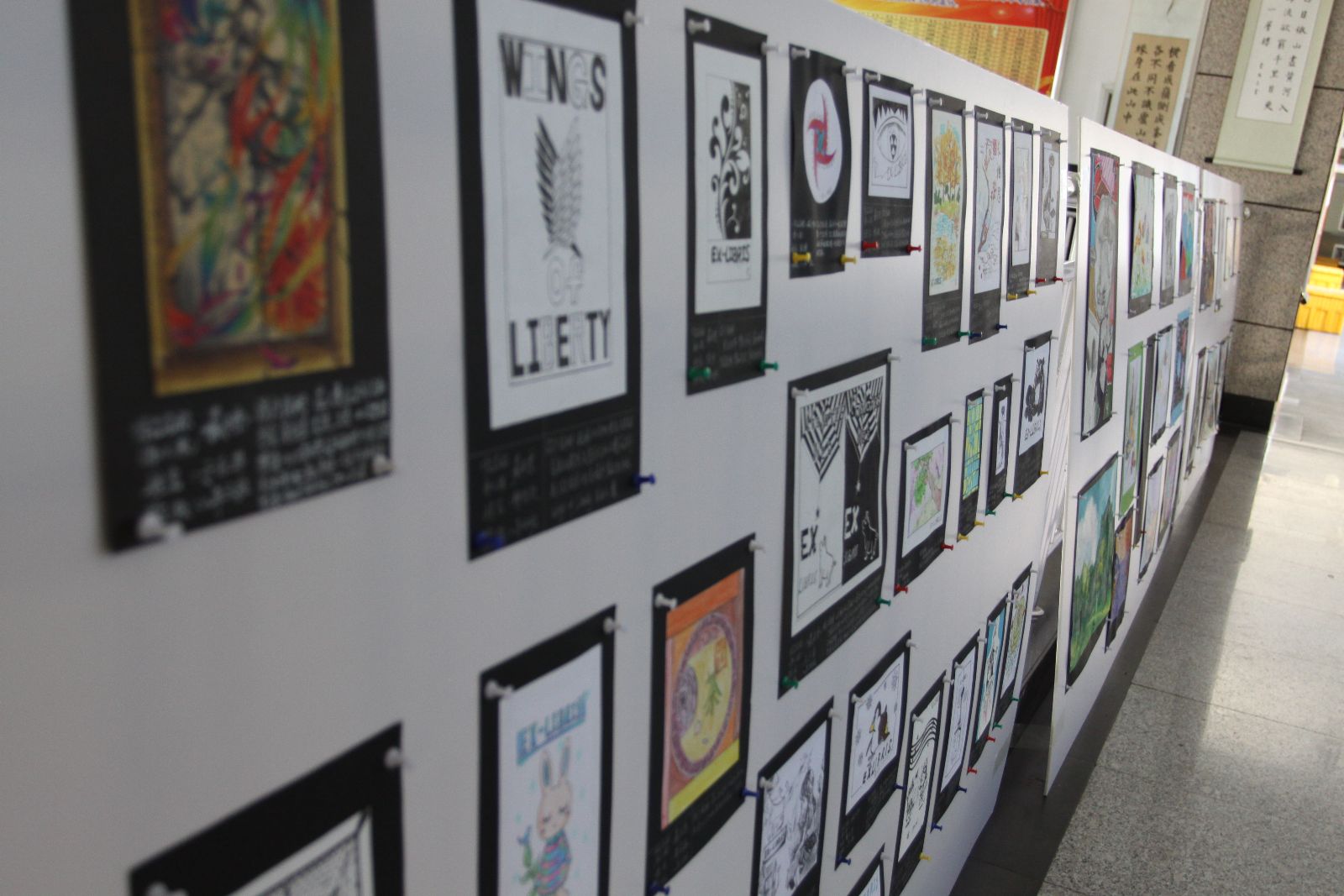 本次活动在二楼中厅展出,此次绘画展宣传了校园文化,增强了学校的文化底蕴。此次画展共展出班徽设计作品140余幅,绘画、藏书票设计、书法作品共94幅,作品数量多、质量高,形式丰富多样、风格各异,作品色彩鲜艳,构图丰满,学生表现沉稳,介绍作品井然有序,充分体现了我校全体同学的朝气蓬勃,过人才艺。