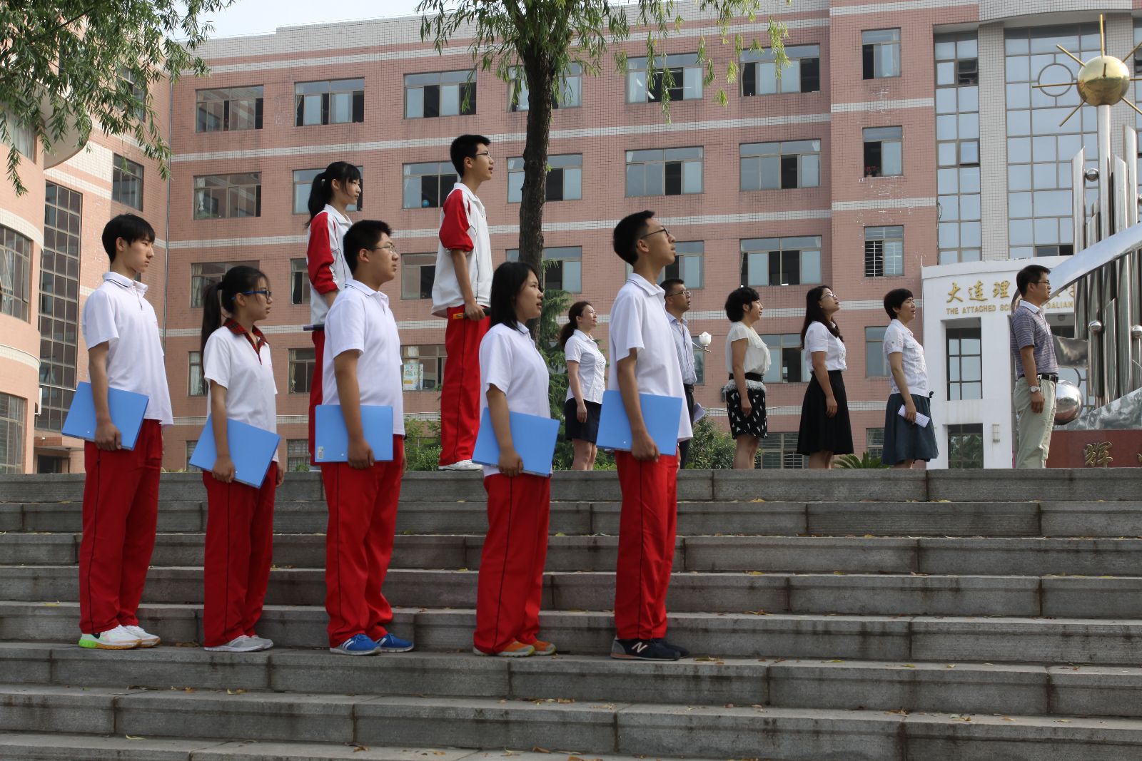 首先,升国旗、奏国歌;其次,由九年级学生代表讲话,倾诉离别之情,很多同学不禁流下不忍离别的泪水;接着,由教师代表给即将离开母校的孩子们送上祝福和嘱托;最后,在大家的铮铮誓言中,升旗仪式圆满结束。