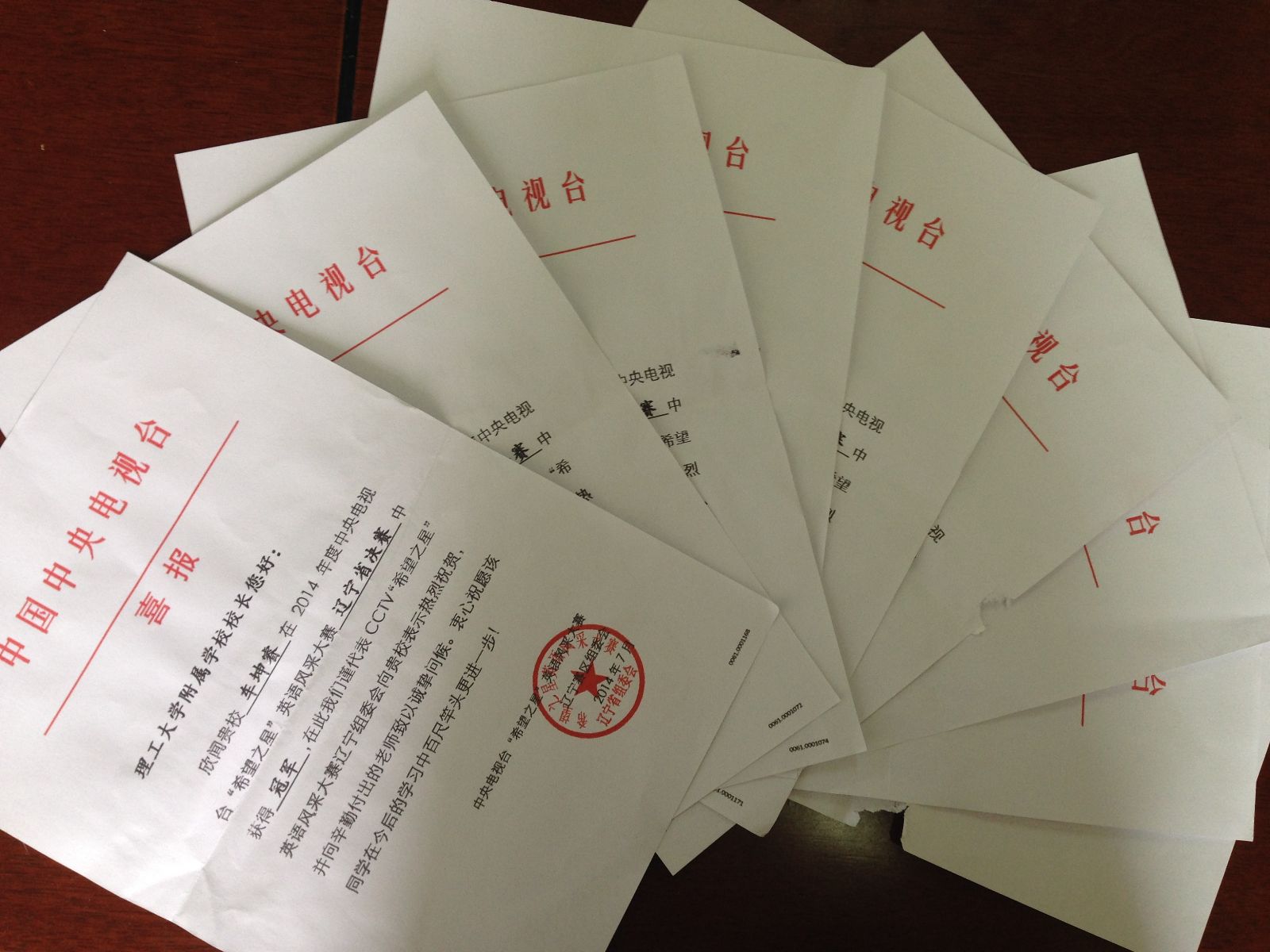2014年7月,我校9名学生参加了中央电视台“希望之星”英语风采大赛,中央电视台特发来祝贺喜报,祝贺我校学生取得的优异成绩,并向辛勤付出的老师致以诚挚的问候。忠心祝愿我们学校英语教学百尺竿头更进一步。