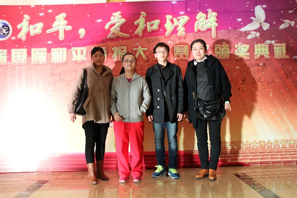 2015年03月14日,我校获奖师生在大连新世界酒店二楼会议厅,参加了第27届国际和平海报大赛大连赛区颁奖典礼。