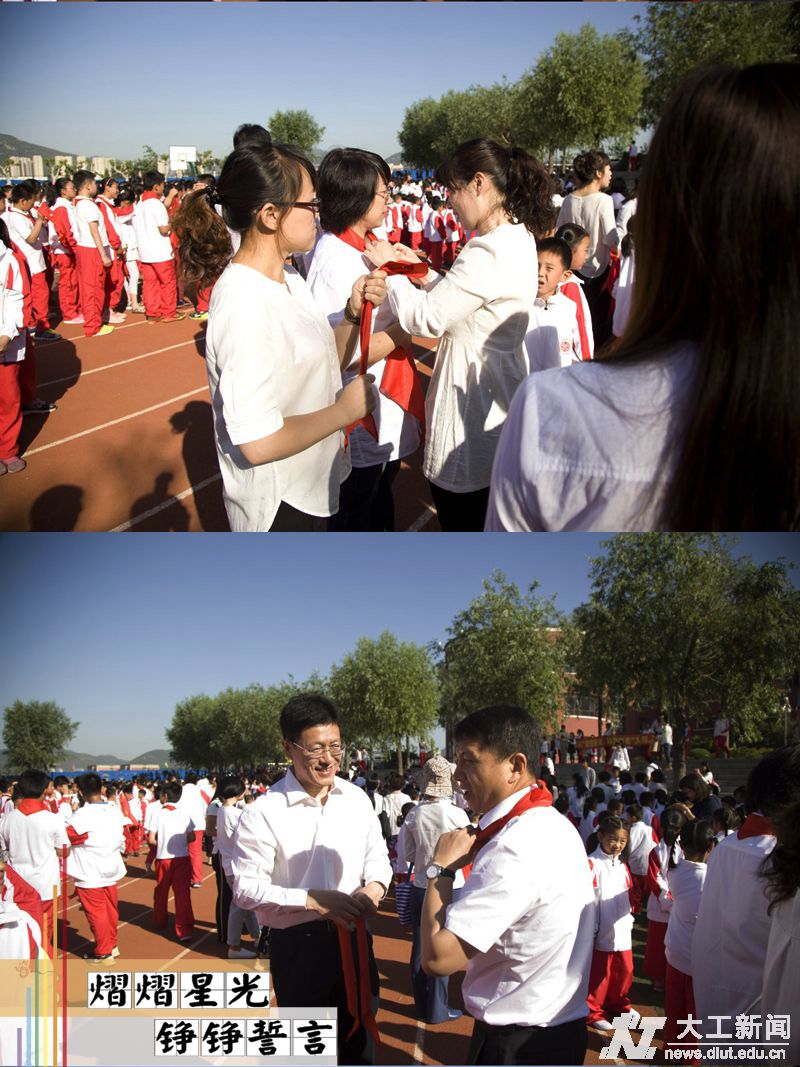 6月1日清晨,大连理工大学附属学校举办了”熠熠星光,铮铮誓言“主题升旗仪式。仪式上,148名中学生光荣加入中国共产主义青年团,220名小学生加入中国少先队。整个仪式简约却不失隆重,紧张而又充满活力,融德育、智育、美育于一体,精心设置的许多环节让孩子们在无形中接受教育,沐浴熏陶,在让孩子们感受到节日气氛的同时,增强着他们的爱国情怀、集体荣誉感与爱校热情。