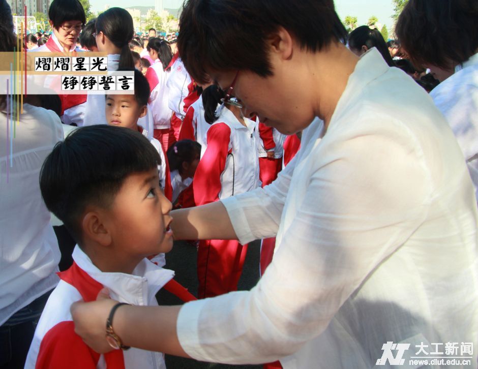 党员代表、团员代表、队员代表以及家长代表为新团员颁发团员证,为新队员佩戴鲜红的红领巾。大工附校校长周杰老师亲自为孩子们佩戴鲜红的红领巾,祝愿“星星火炬”伴随孩子们一同成长。