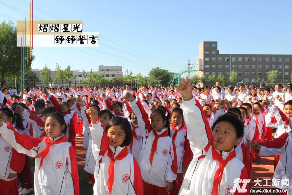 旭日初升,张张笑脸在阳光下绽放。“六一国际儿童节”清晨,大工附属学校举行了“熠熠星光,铮铮誓言”主题入团入队仪式。