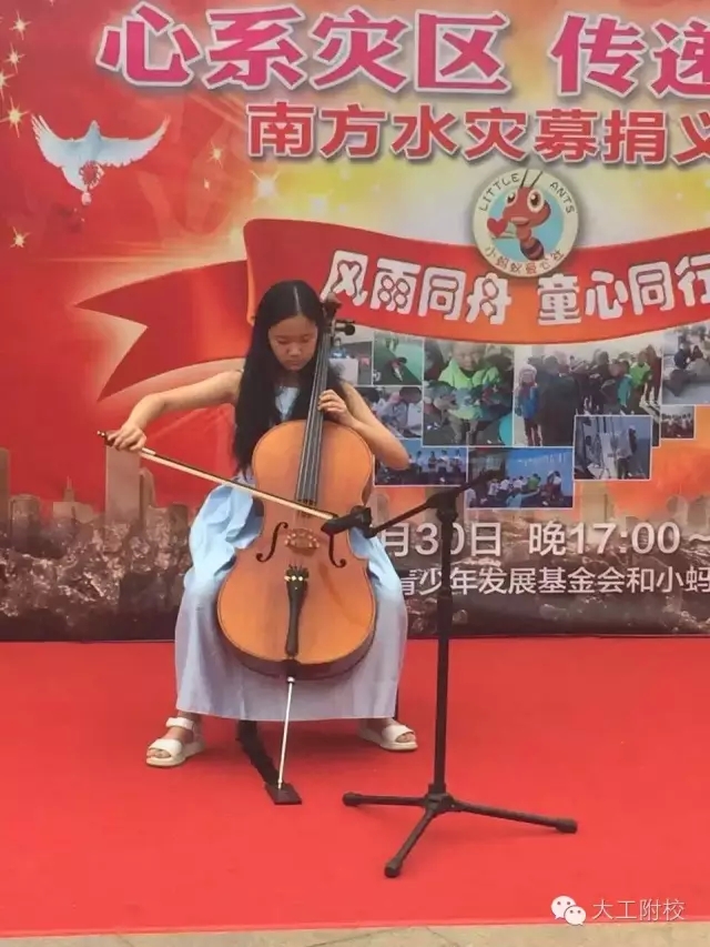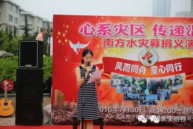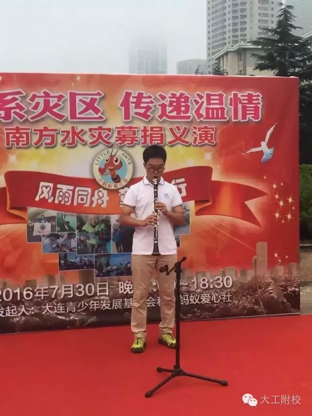 近期南方持续大雨,很多地方受灾,不仅造成了巨大损失,也使得很多儿童家园被淹,家里损失巨大。大连理工大学附属学校“小蚂蚁之家”爱心社联合大连青基会于7月30日在星海人家社区广场举办了一场义演,希望能让更多的人了解到南方地区的情况,也希望能唤起更多人共同努力,伸出援助之手,帮助受灾地区儿童筹集新学期入学的款项。经过大工附校的高可越和在美国读初中的车坤睿等15名初中生近一个半小时的演出,现场观众踊跃捐款,经过统计,本次义演共募集善款10500元,将通过大连青基会捐赠给湖北武汉市九沟小学,用于校舍维修和文具购买等。