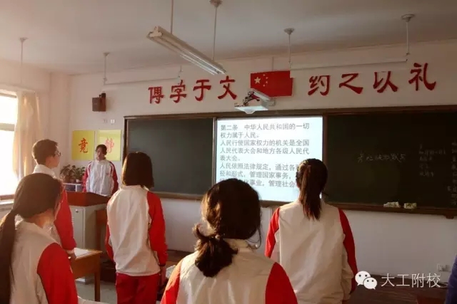 仪式上,全校师生一起高声诵读宪法的部分章节。随后班主任又做了详细说明,让学生认识到宪法意识的培养对于自己人格健全的重要意义所在,意识到每个人尊重宪法、维护宪法、自觉遵守和实施宪法有着义不容辞的责任。