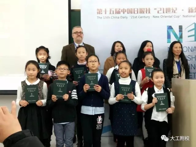 在12月18日举行的第十五届中国日报“21世纪-新东方杯”全国英语演讲比赛辽宁南部赛区决赛中,大工附校选手再创佳绩,斩获冠军、季军、一等奖3名、二等奖2名和三等奖1名。大工附校成为全场比赛最令人瞩目的学校。