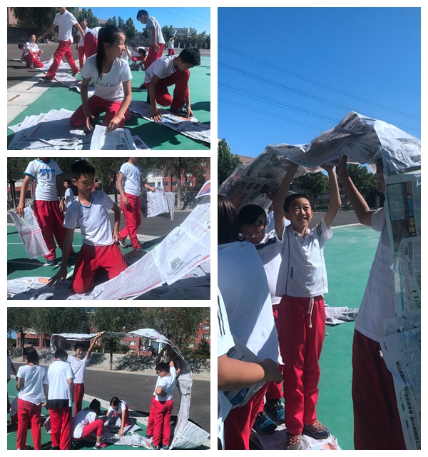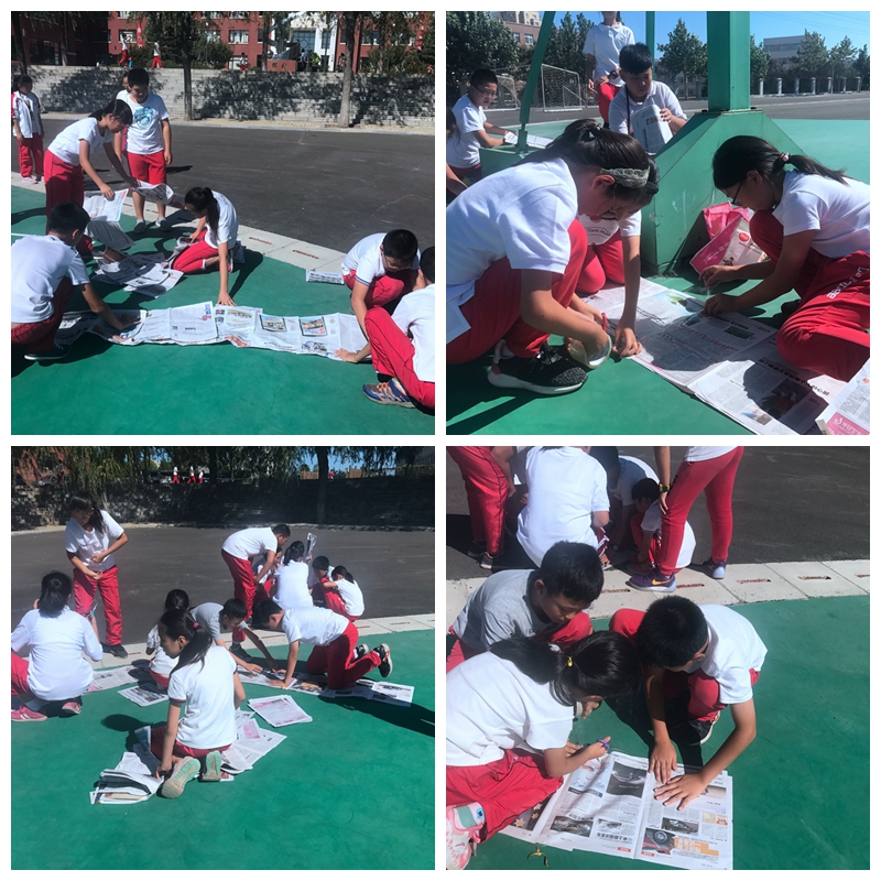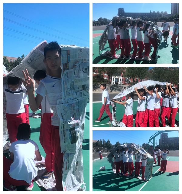 活动过后,报纸被风吹扬飘散。富于启发式教育的张老师只是问同学们:这废报纸怎么办?就有好几个同学主动承担清洁小能手,迅速将所有报纸收集起来。四十八名学生用几百张报纸参与活动过后,诺大的操场竟然看不到一个纸片。