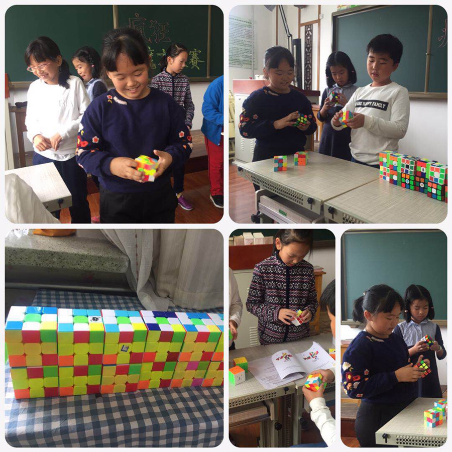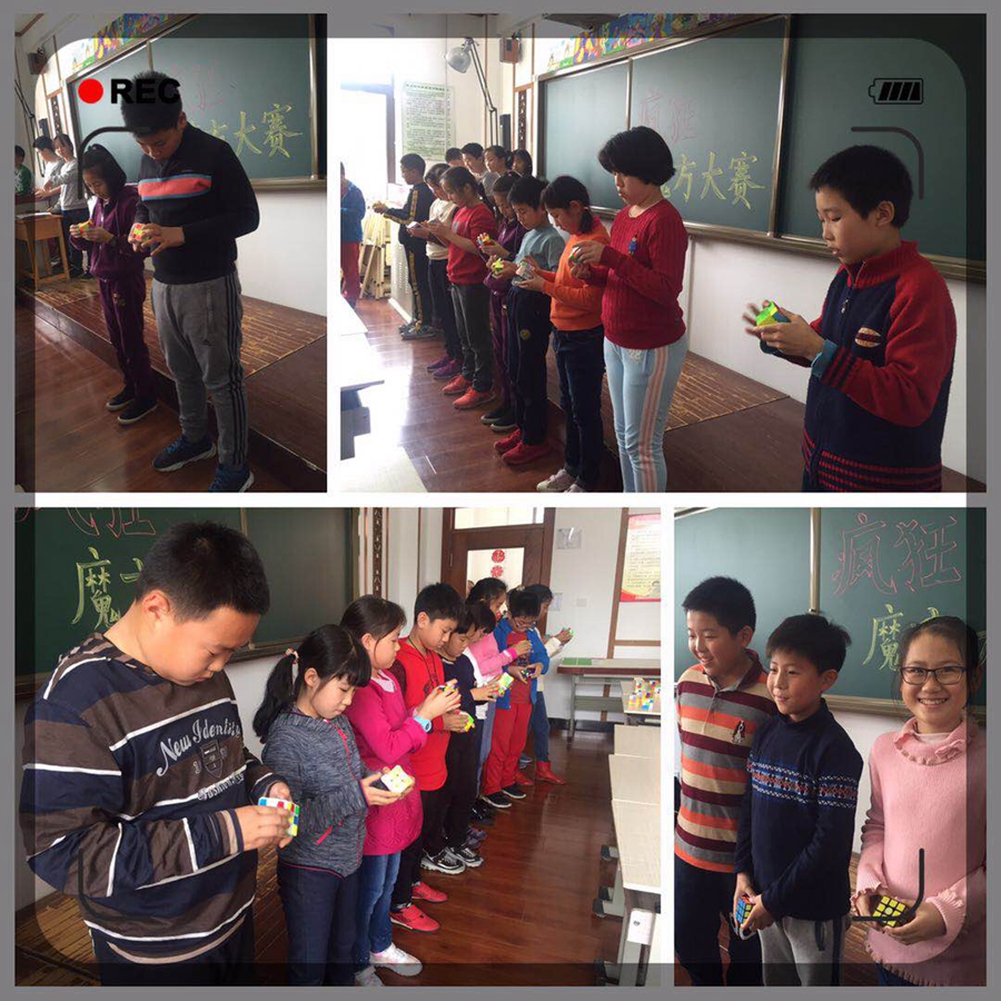 本学期,我校的数学课前活动,就大胆尝试用魔方训练同学们的思维力、专注力,激发学生学习数学的兴趣,课前五分钟的数学活动干脆就以“魔方擂台赛”的形式活跃学生思维,看学生们专注的表情、手中飞转的魔方、无不体现灵动的思维。