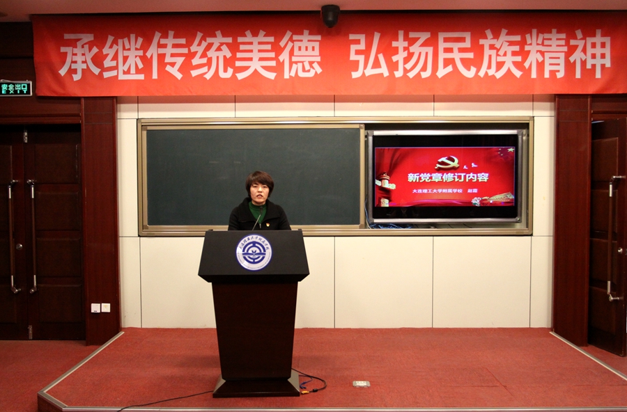 12月13日中午,赵霞副校长给大工附校全体党员上了关于“党章的修订”的党课。
