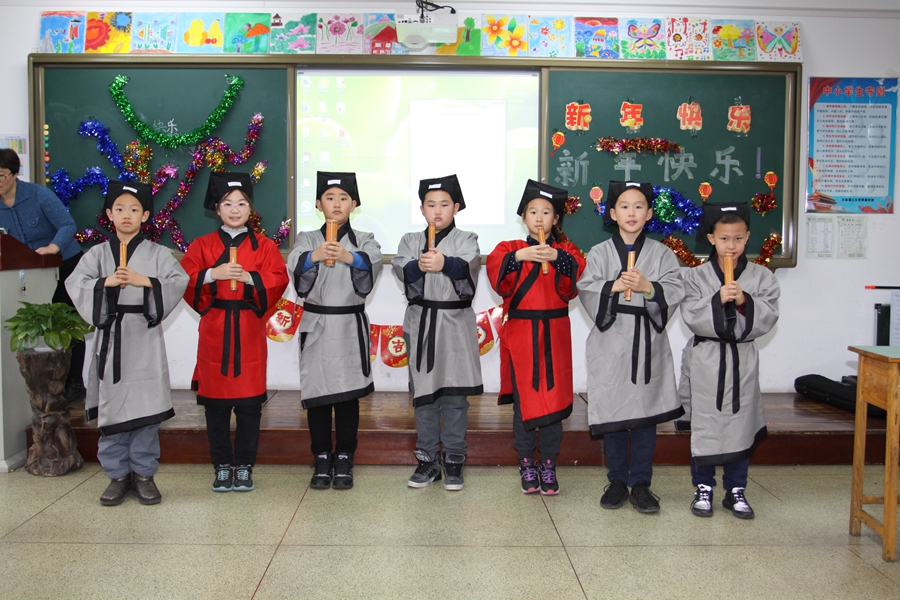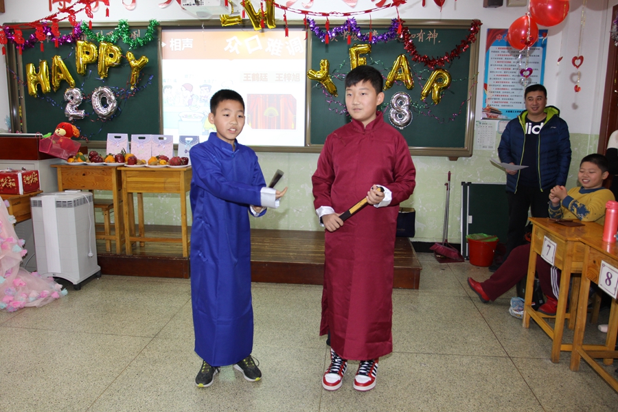 元旦联欢会正式开始后,教学楼内顿时变成了笑声与歌声汇成的欢乐海洋。再美丽的语言都无法描绘孩子们的童趣与欢笑,再华丽的辞藻都无法表达孩子们的青春与骄傲,还是让我们跟随镜头一起大饱眼福、分享快乐吧!