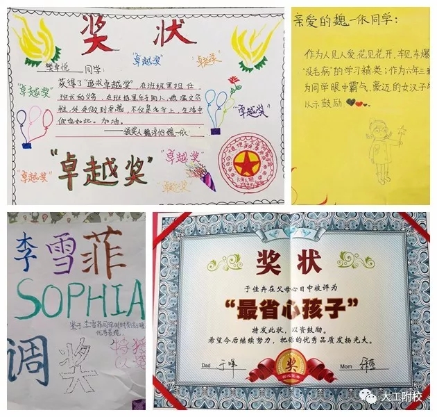 本次活动最大的亮点是由同学为同学颁奖,奖项的范围很宽泛,只要是闪光点,值得尊重,值得大家学习即可颁奖。活动要求:同学们自行组成颁奖小组(至少两人),既要制定奖状,又要拟定颁奖辞。活动还邀请了四位家长亲临现场。