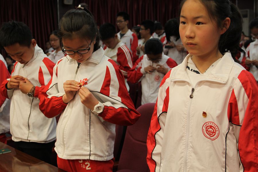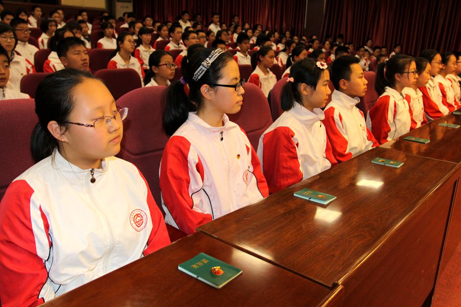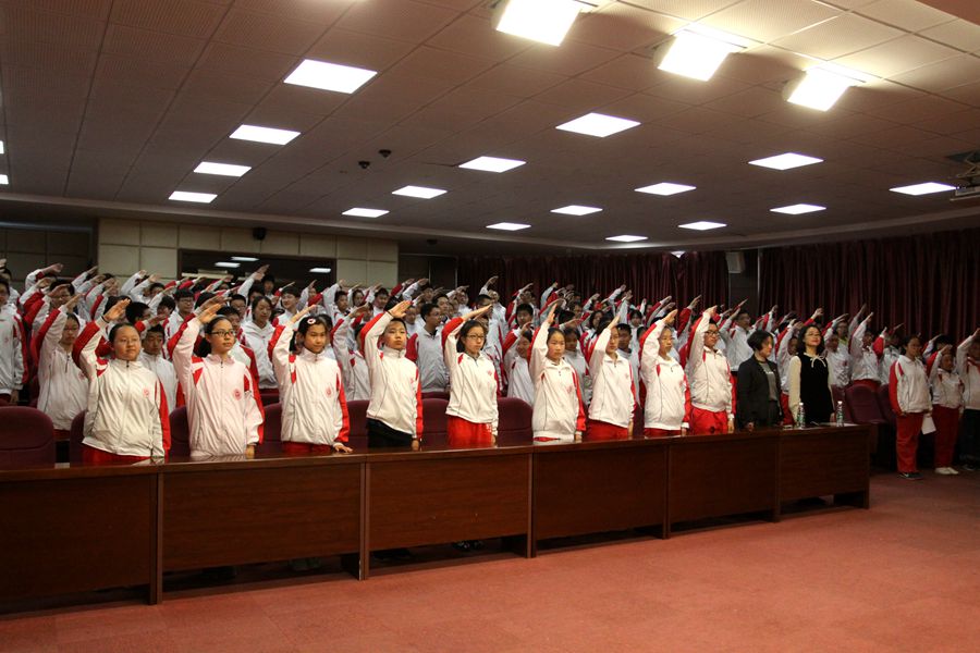44名新团员、全体七年级学生、八年级优秀团员代表、六年级学生代表参加了活动。